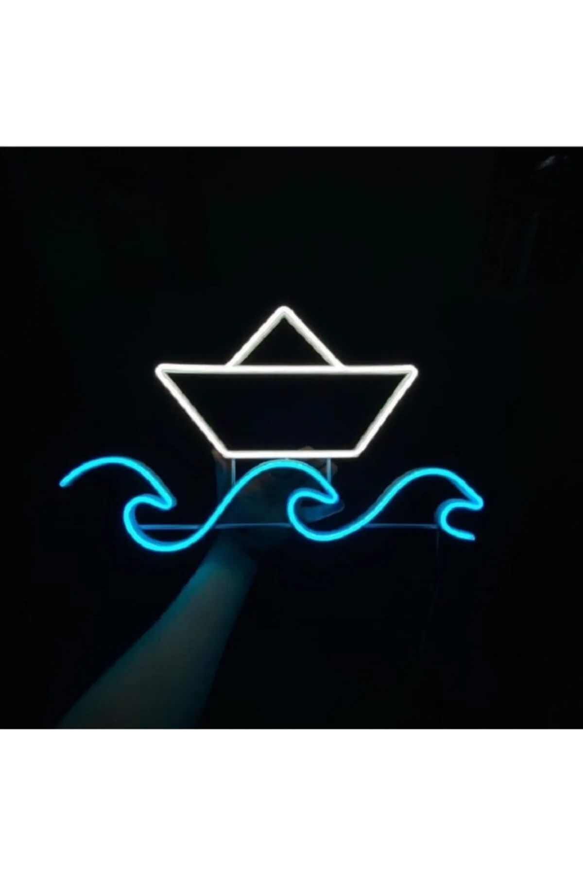 Neon Led Işıklı Kağıttan Gemi Şeklinde Şeffaf Pleksi Üzerine Neon Led Tabela,