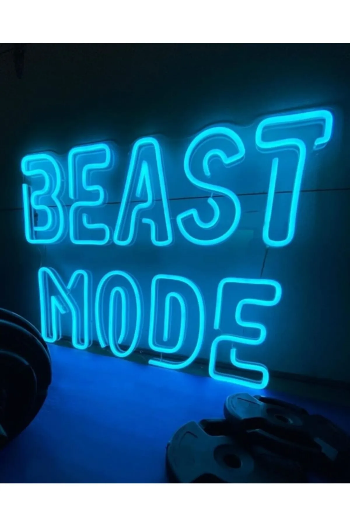Neon Led Işıklı Beast Mode Yazılı Şeffaf Pleksi Üzerine Neon Led Tabela,