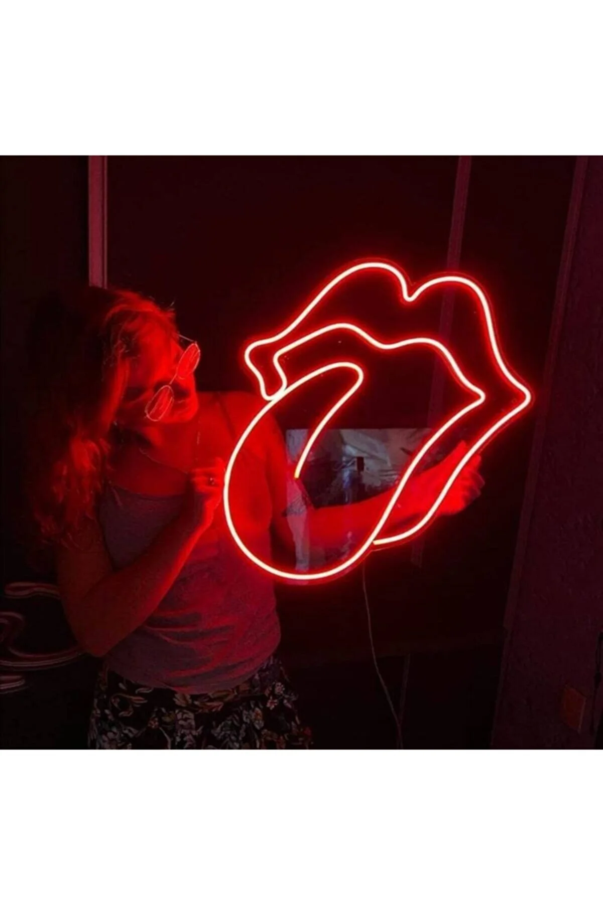 Neon Led Işıklı The Rolling Stones Dil Şeklinde Şeffaf Pleksi Üzerine Neon Led Tabela,