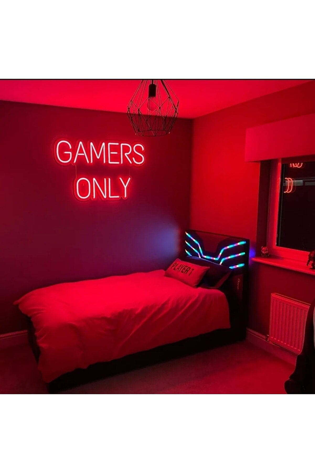 Neon Led Işıklı Gamers Only Yazılı Şeffaf Pleksi Üzerine Neon Led Tabela,