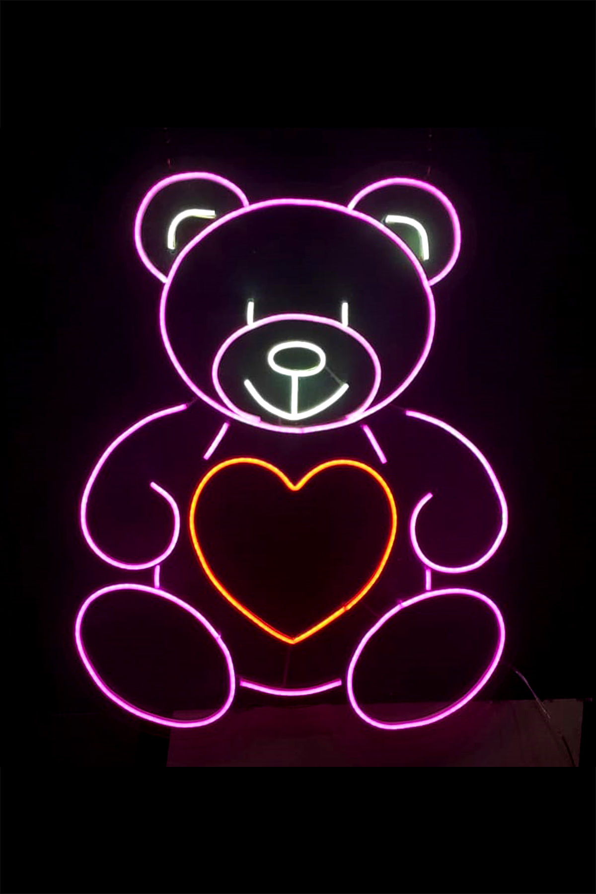 Kalpli Ayıcık Şeklinde Neon Led Işıklı Tablo