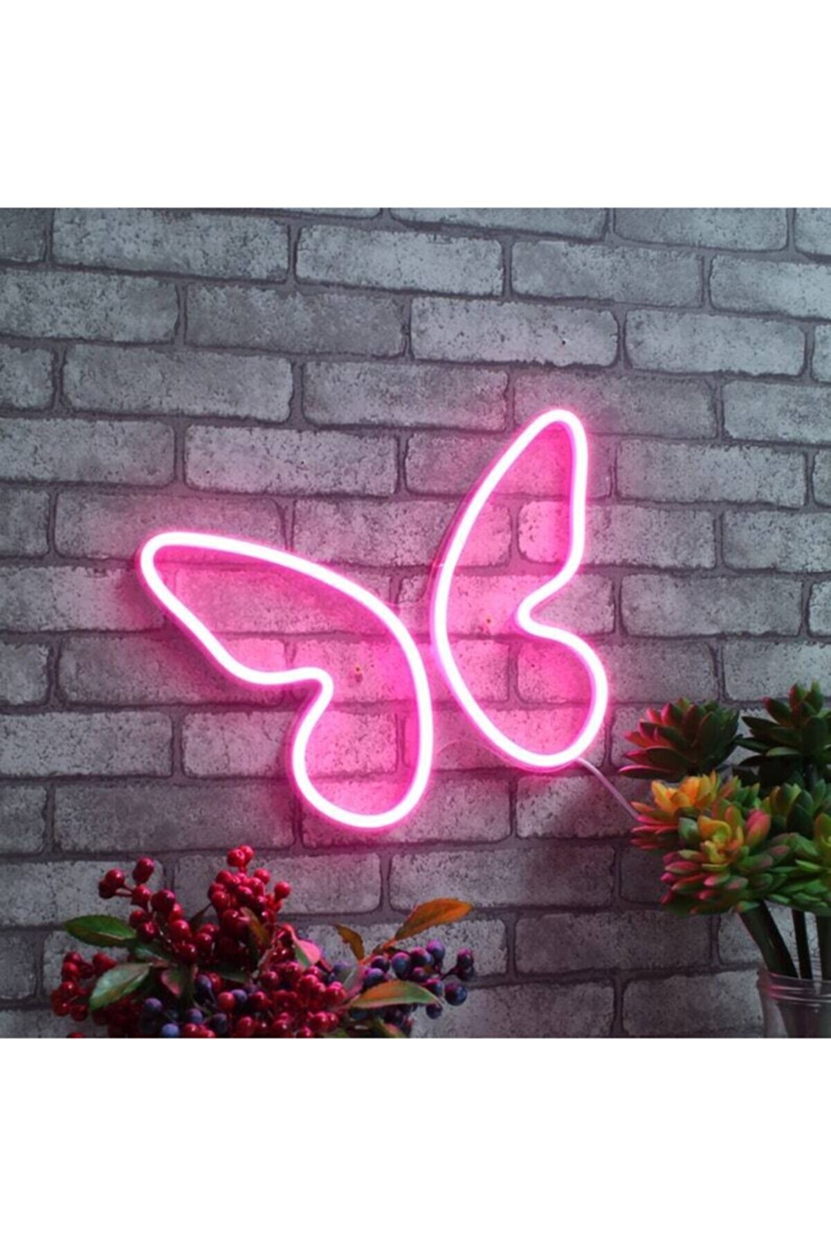 Neon Led Işıklı Kelebek Şeklinde Şeffaf Pleksi Üzerine Neon Led Tabela,