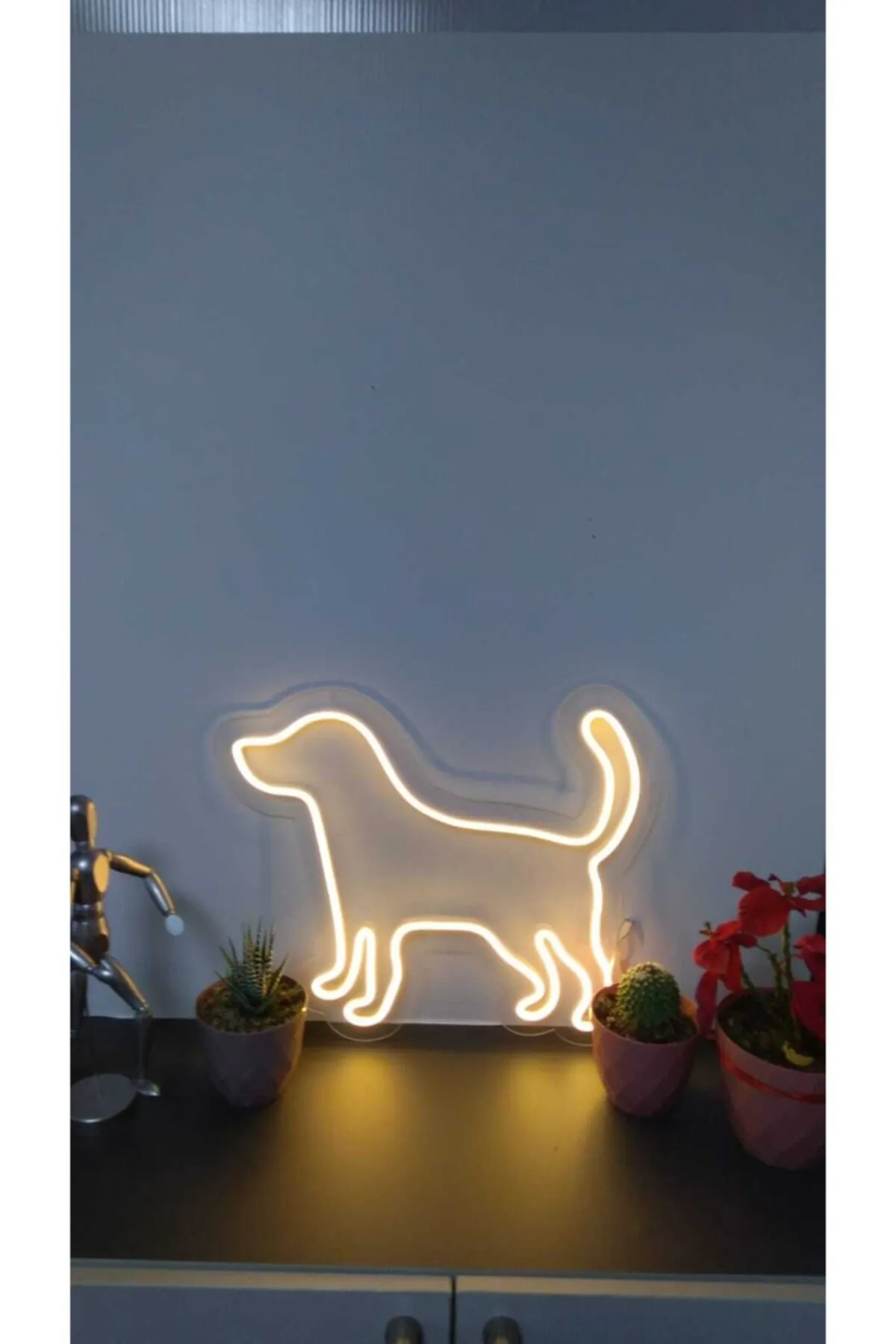 Neon Led Işıklı Köpek Şeklinde Şeffaf Pleksi Üzerine Neon Led Tabela,