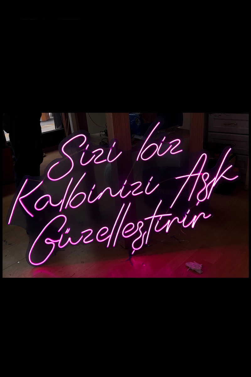 Neon Led Işıklı Sizi Biz Kalbinizi Aşk Güzelleştirir Yazılı Şeffaf Pleksi Üzerine Neon Led Tabela,