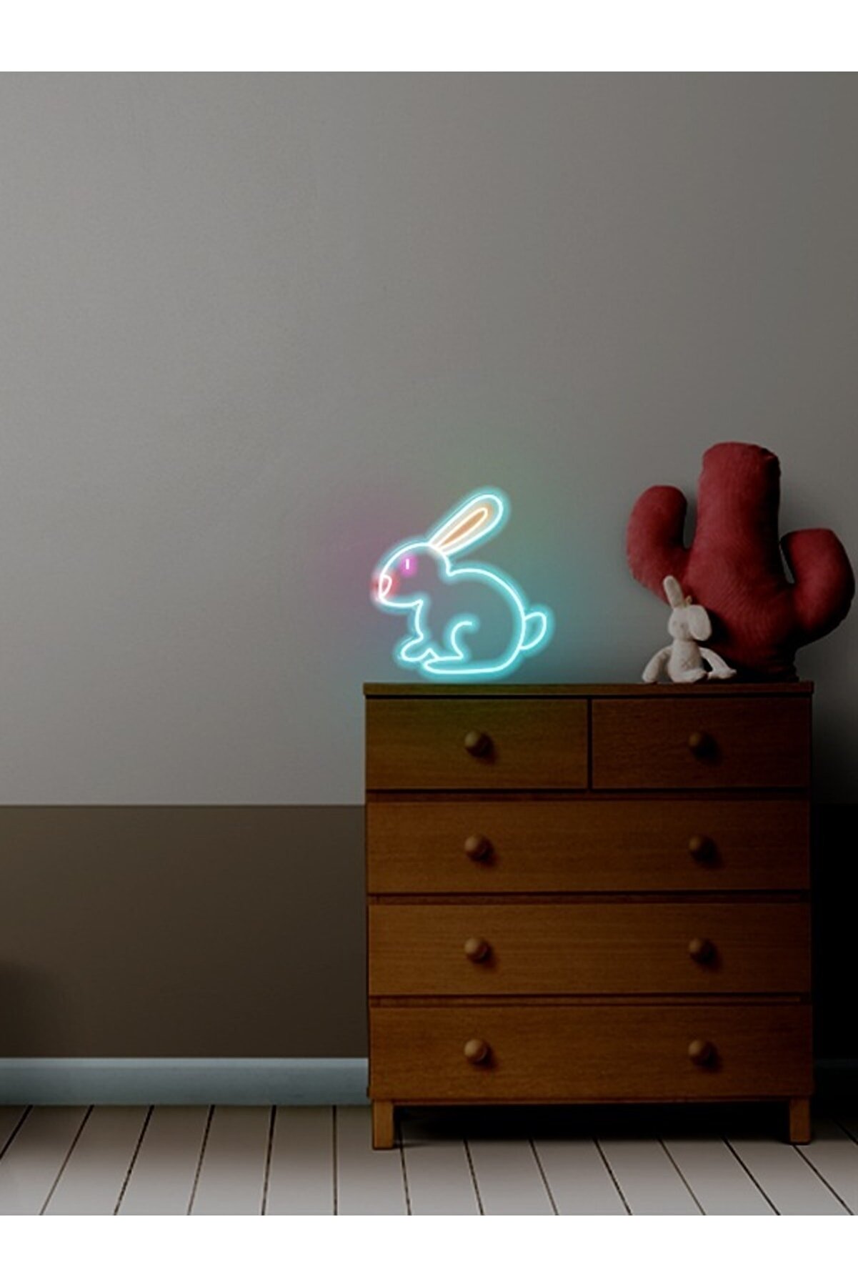 Neon Led Işıklı Tavşan Şeklinde Masaüstü/Duvar Şeffaf Pleksi Üzerine Neon Led Tabela,