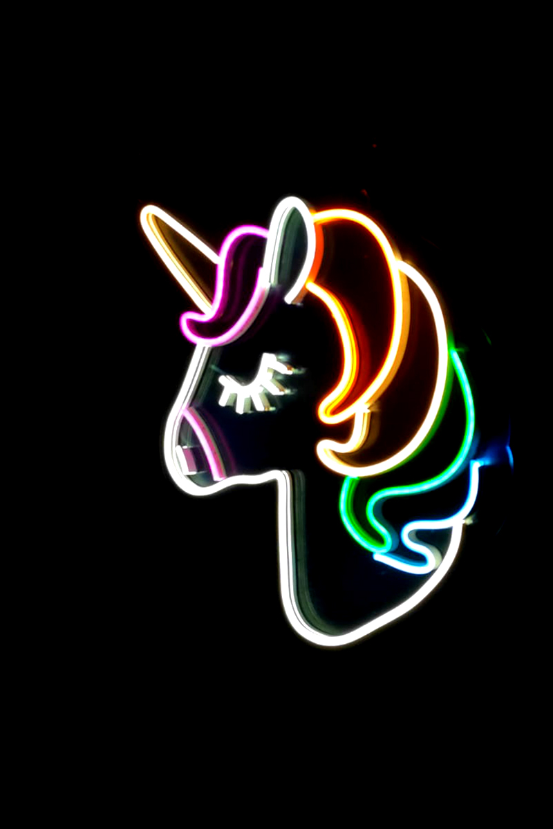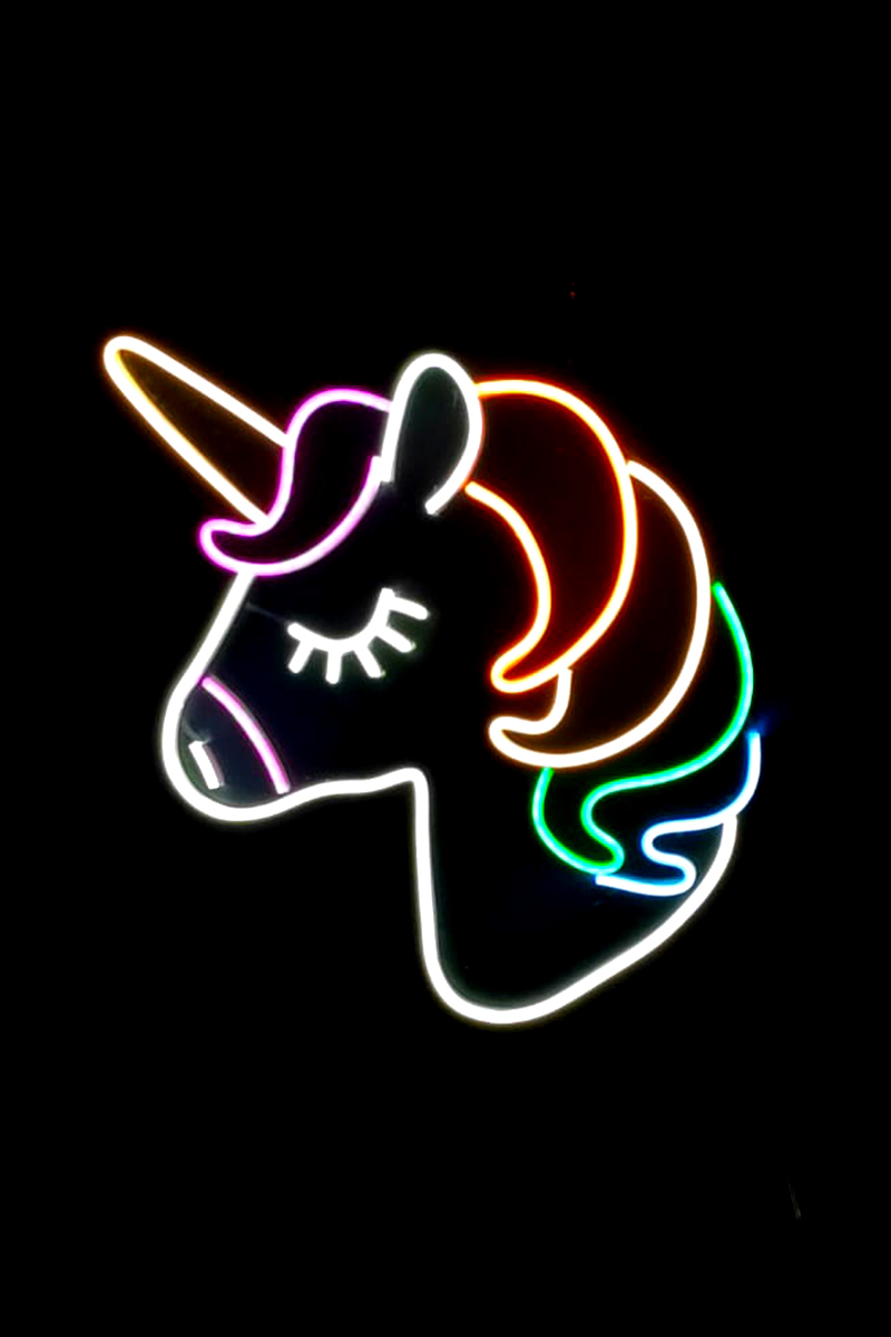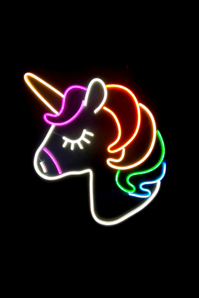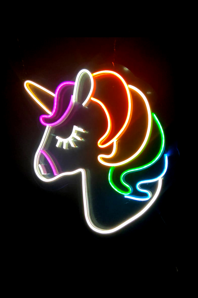 Neon Led Işıklı Unicorn Şeklinde Şeffaf Pleksi Üzerine Neon Led Tabela,
