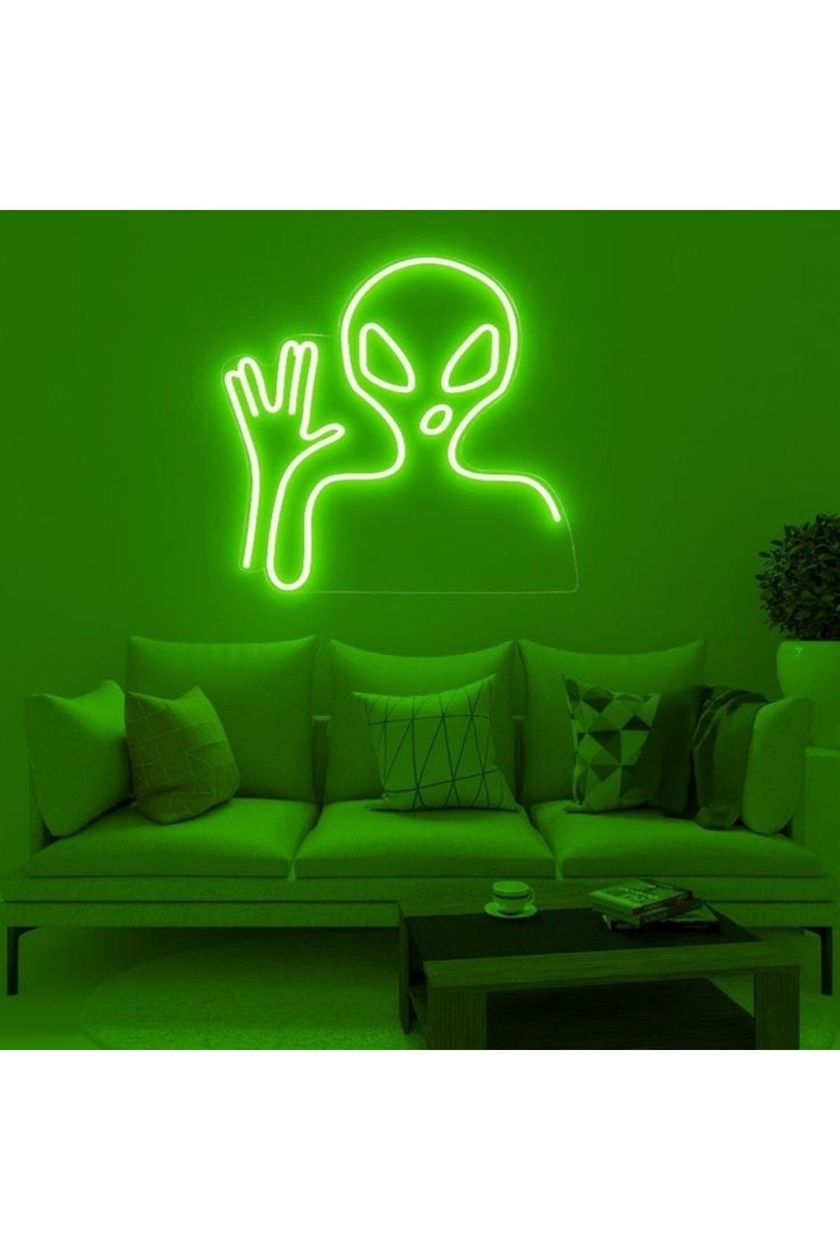Neon Led Işıklı Uzaylı Şeklinde Masaüstü/Duvar Şeffaf Pleksi Üzerine Neon Led Tabela,