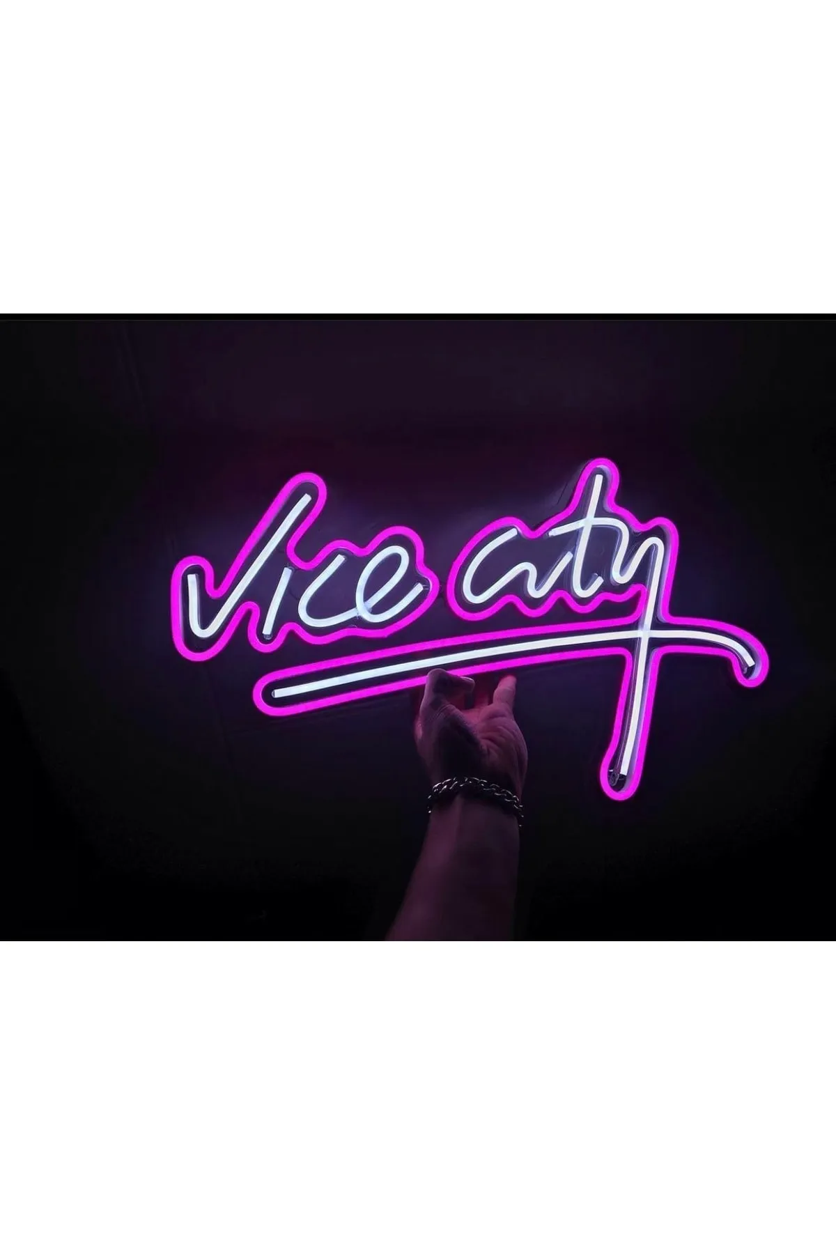 Neon Led Işıklı Vice City Şeklinde Şeffaf Pleksi Üzerine Neon Led Tabela,
