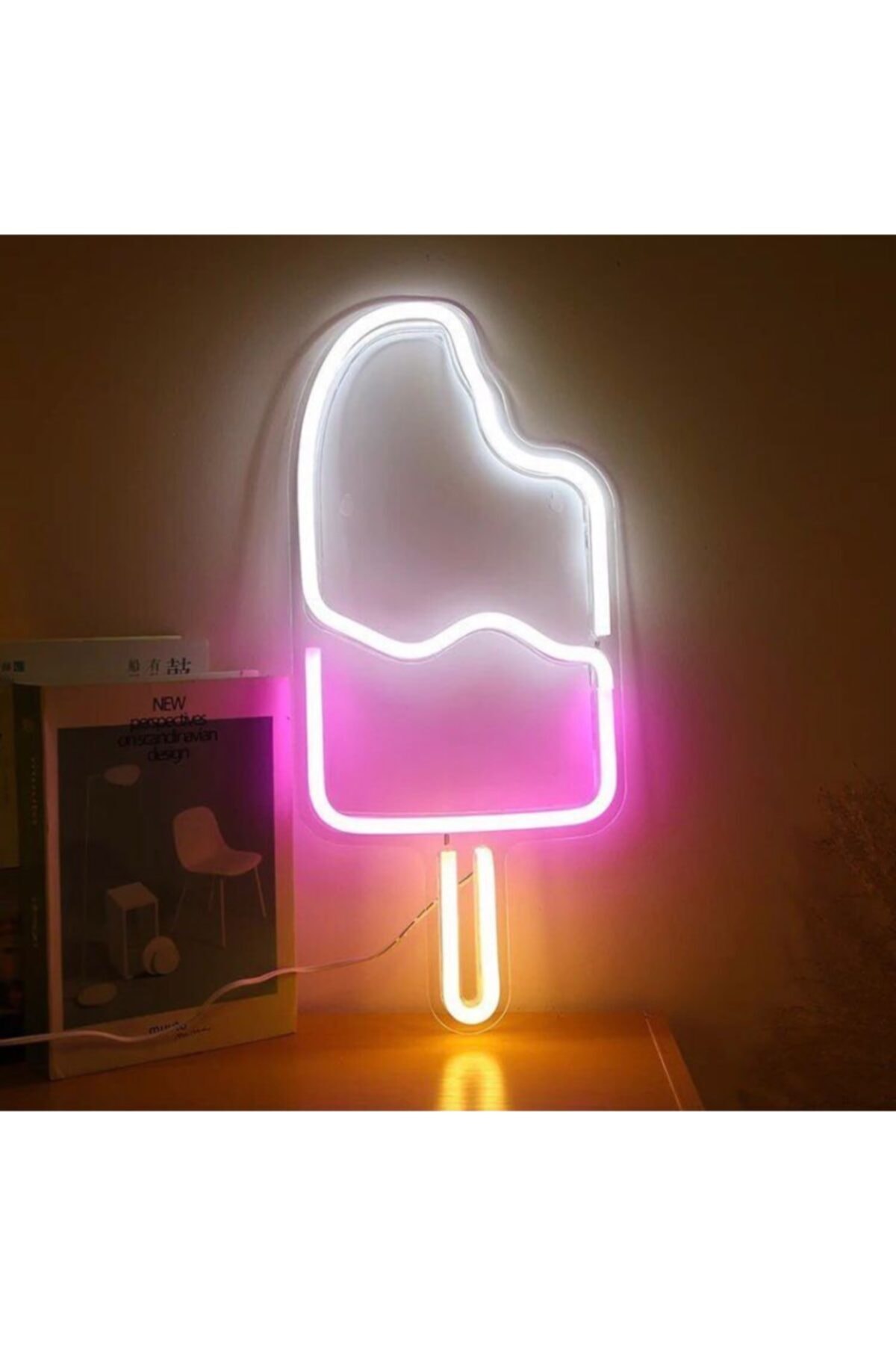 Neon Led Işıklı Dondurma Şeklinde Şeffaf Pleksi Üzerine Neon Led Tabela,
