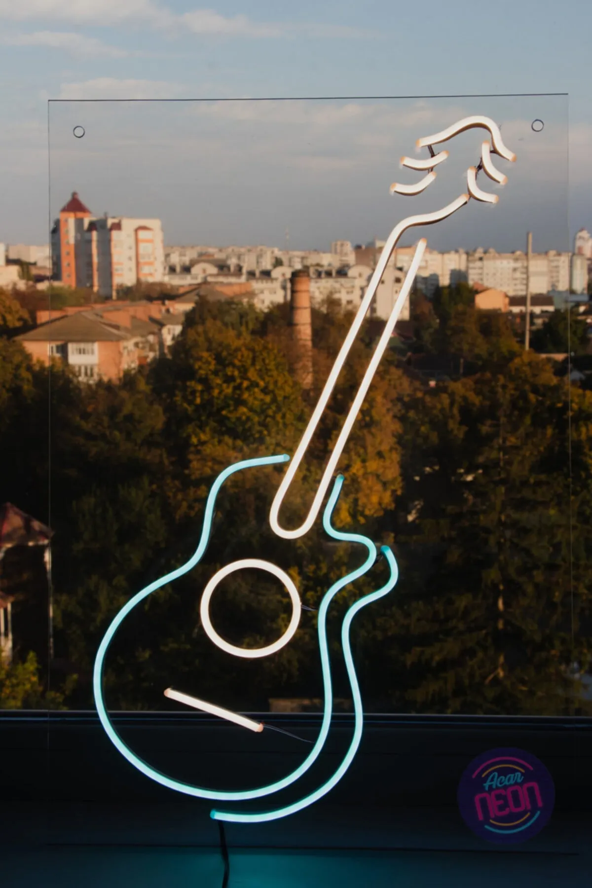 Neon Led Işıklı Gitar Şeklinde Şeffaf Pleksi Üzerine Neon Led Tabela,