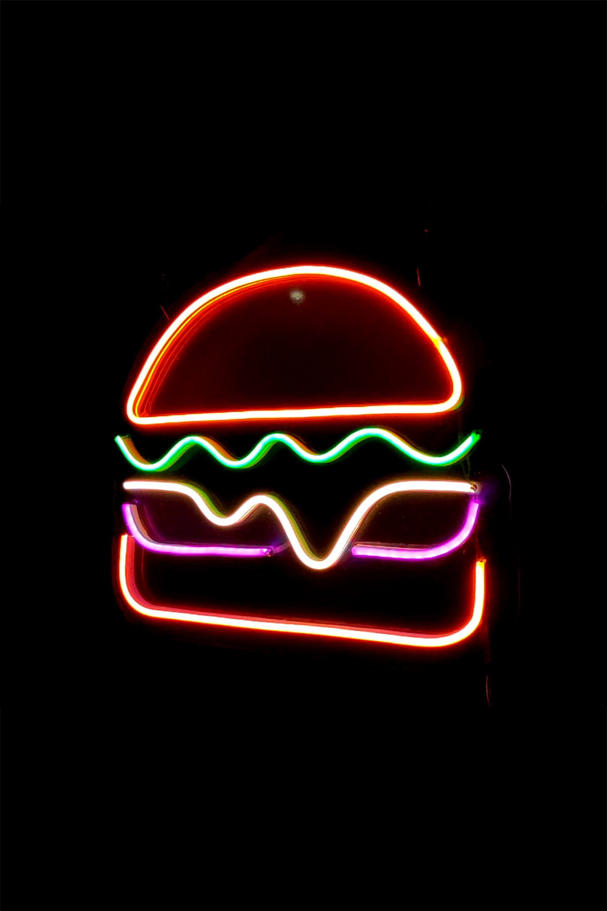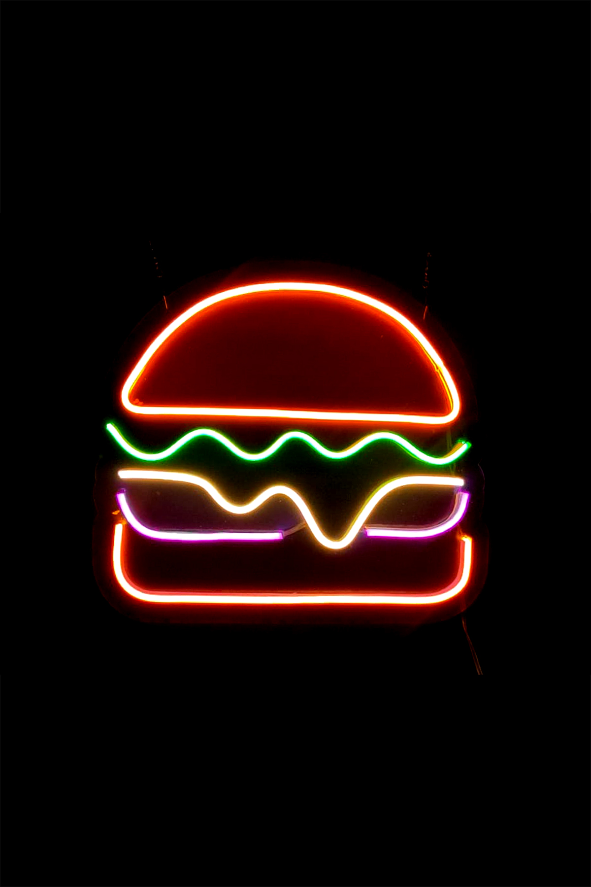 Neon Led Işıklı Hamburger Şeklinde Şeffaf Pleksi Üzerine Neon Led Tabela,