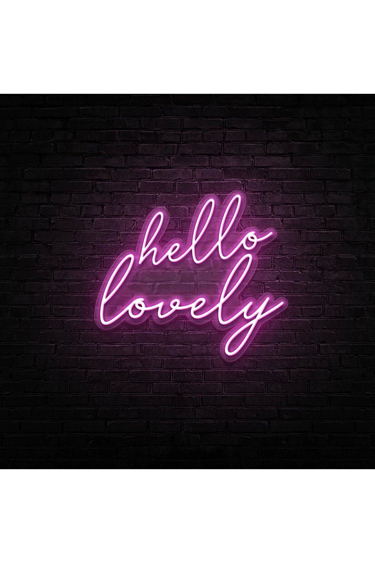 Neon Led Işıklı Hello Lovely Yazılı Şeffaf Pleksi Üzerine Neon Led Tabela,