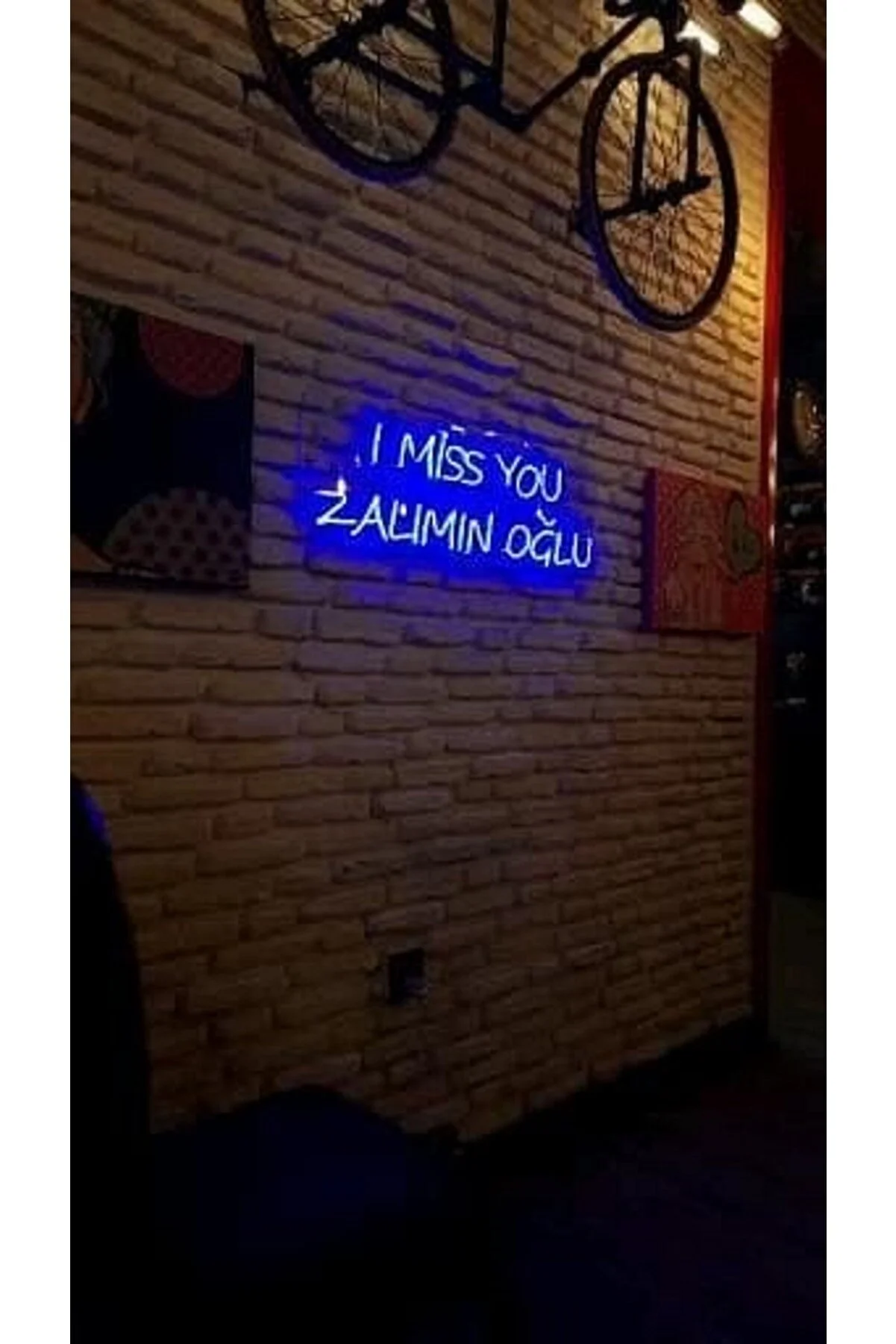 Neon Led Işıklı I Miss You Zalımın Oğlu Yazılı Şeffaf Pleksi Üzerine Neon Led Tabela,