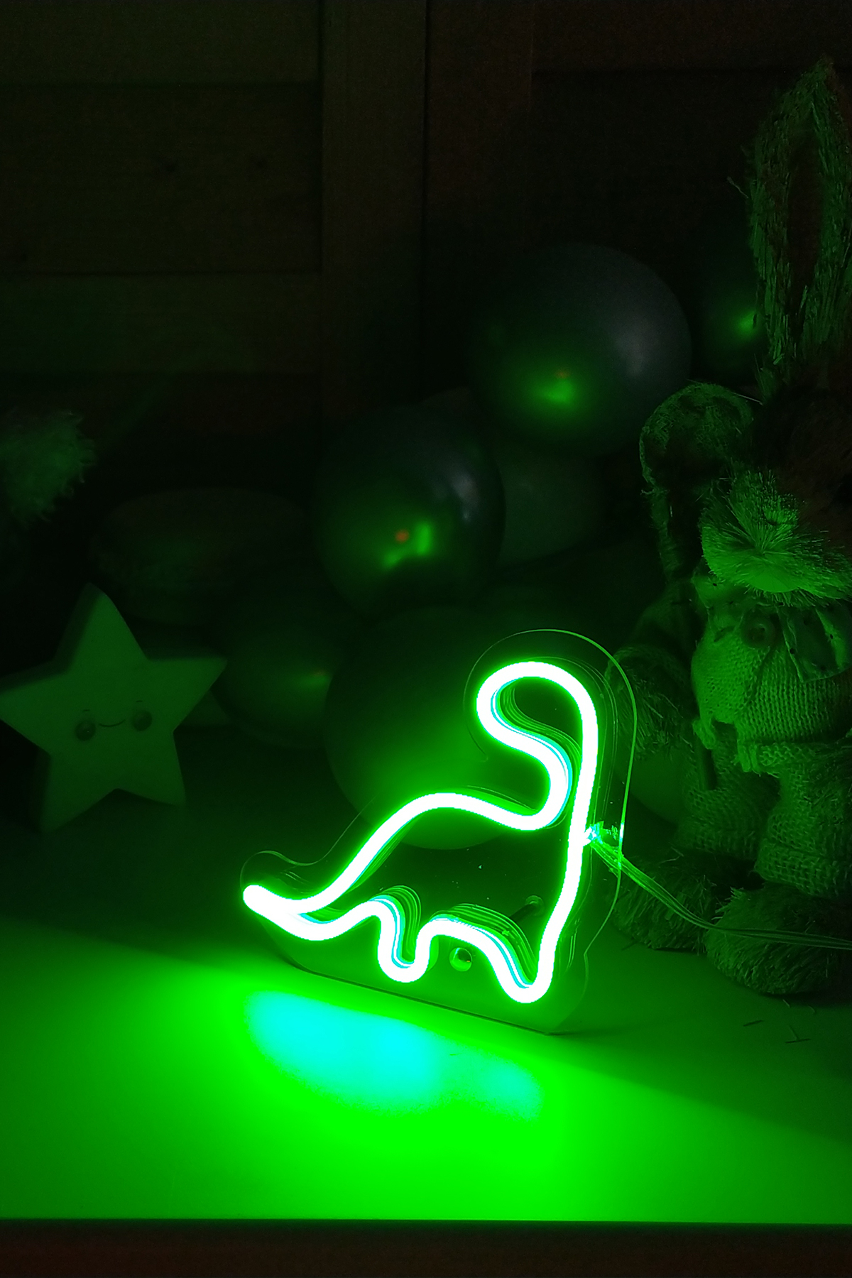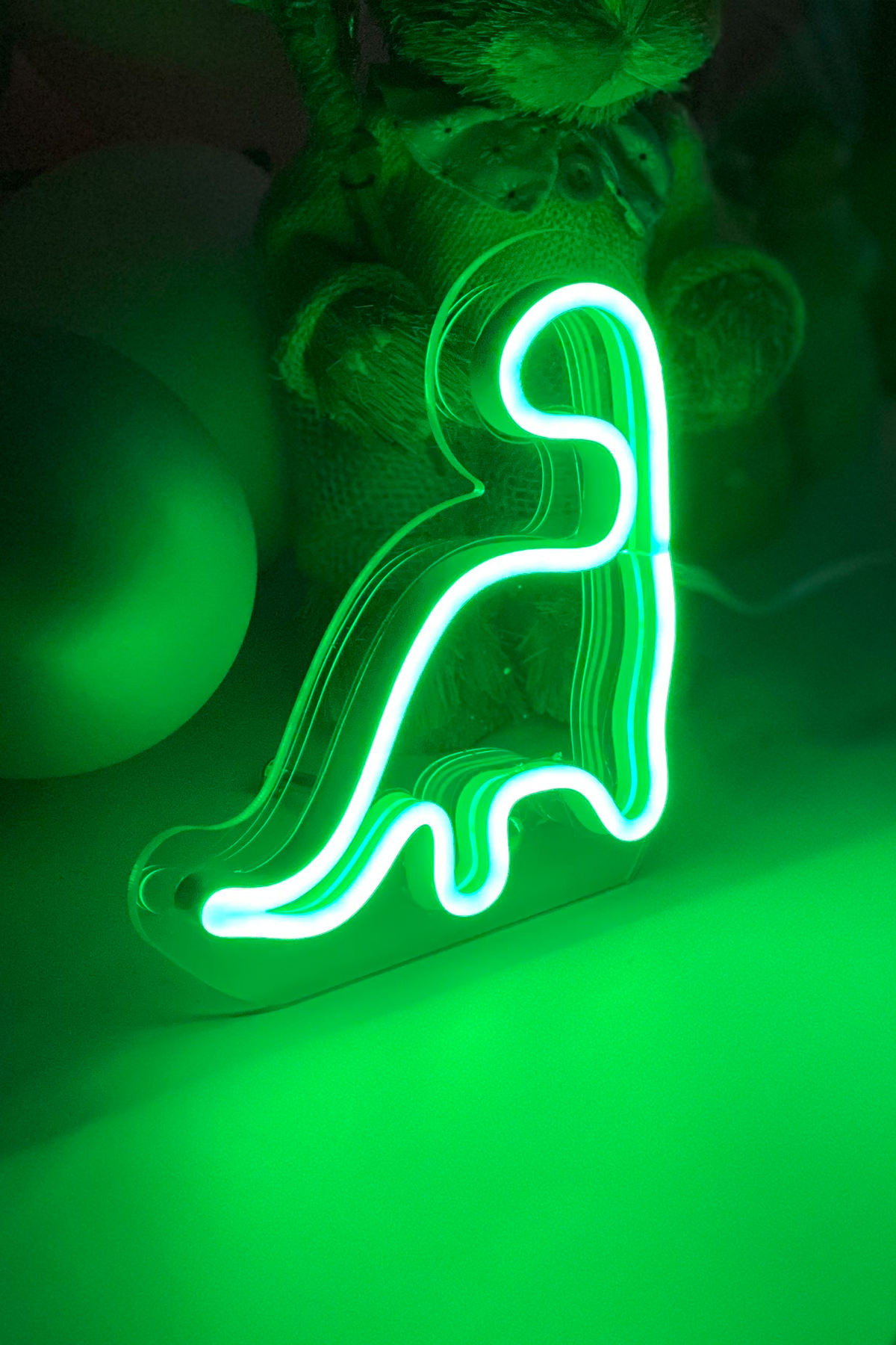 Neon Led Işıklı Çocuk Odası İçin Masaüstü Küçük Dinozor Şeklinde Şeffaf Pleksi Üzerine Neon Led Tabela,