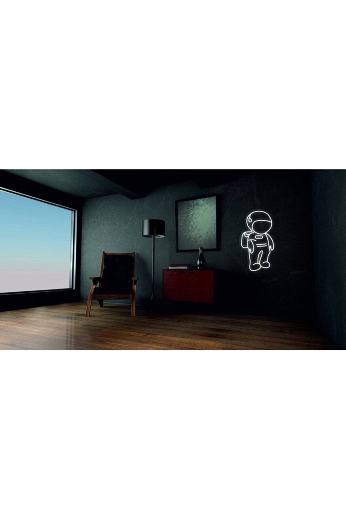 Neon Led Işıklı Astronot Şeklinde Şeffaf Pleksi Üzerine Neon Led Tabela,