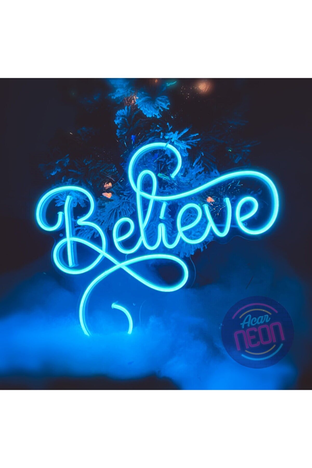 Neon Led Işıklı Believe Yazılı Şeffaf Pleksi Üzerine Neon Led Tabela,