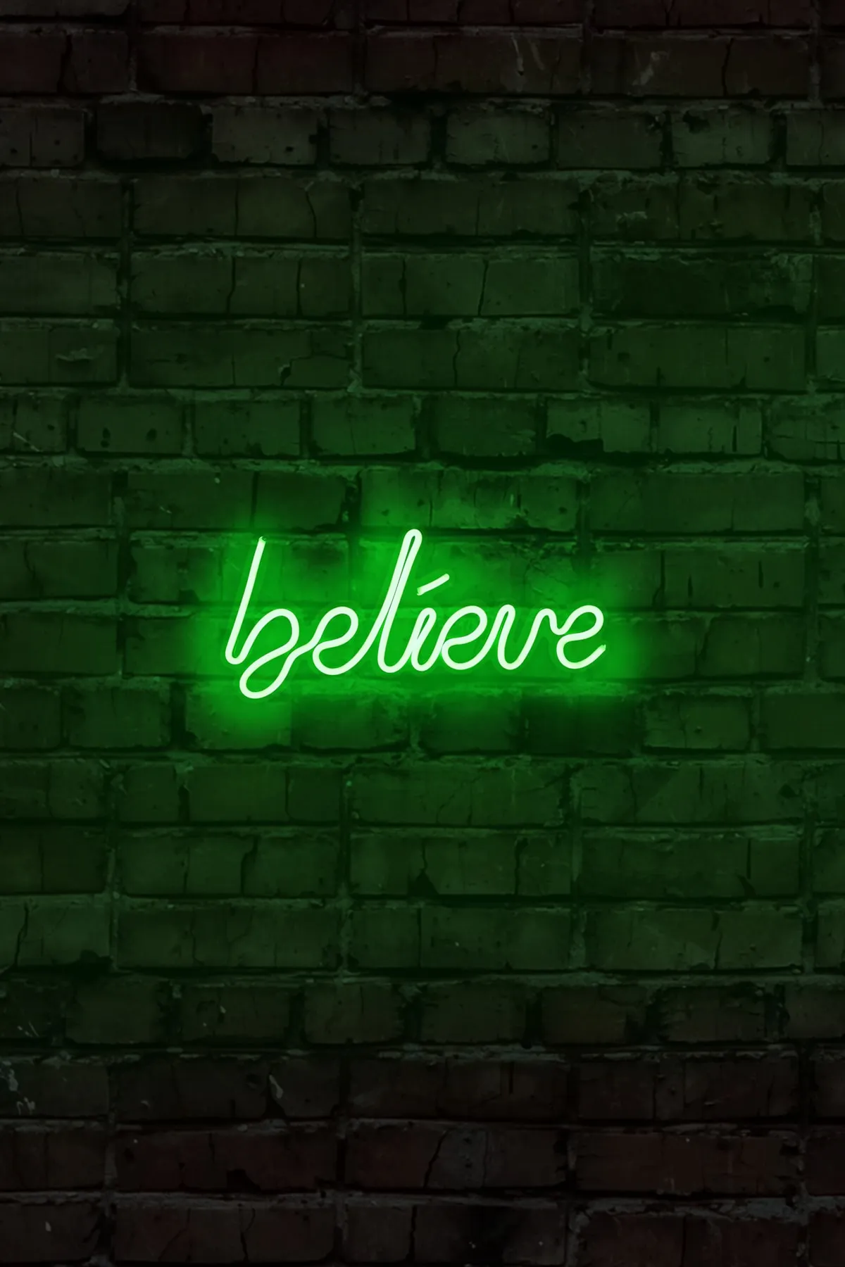 Neon Led Işıklı Believe Yazılı Şeffaf Pleksi Üzerine Neon Led Tabela,
