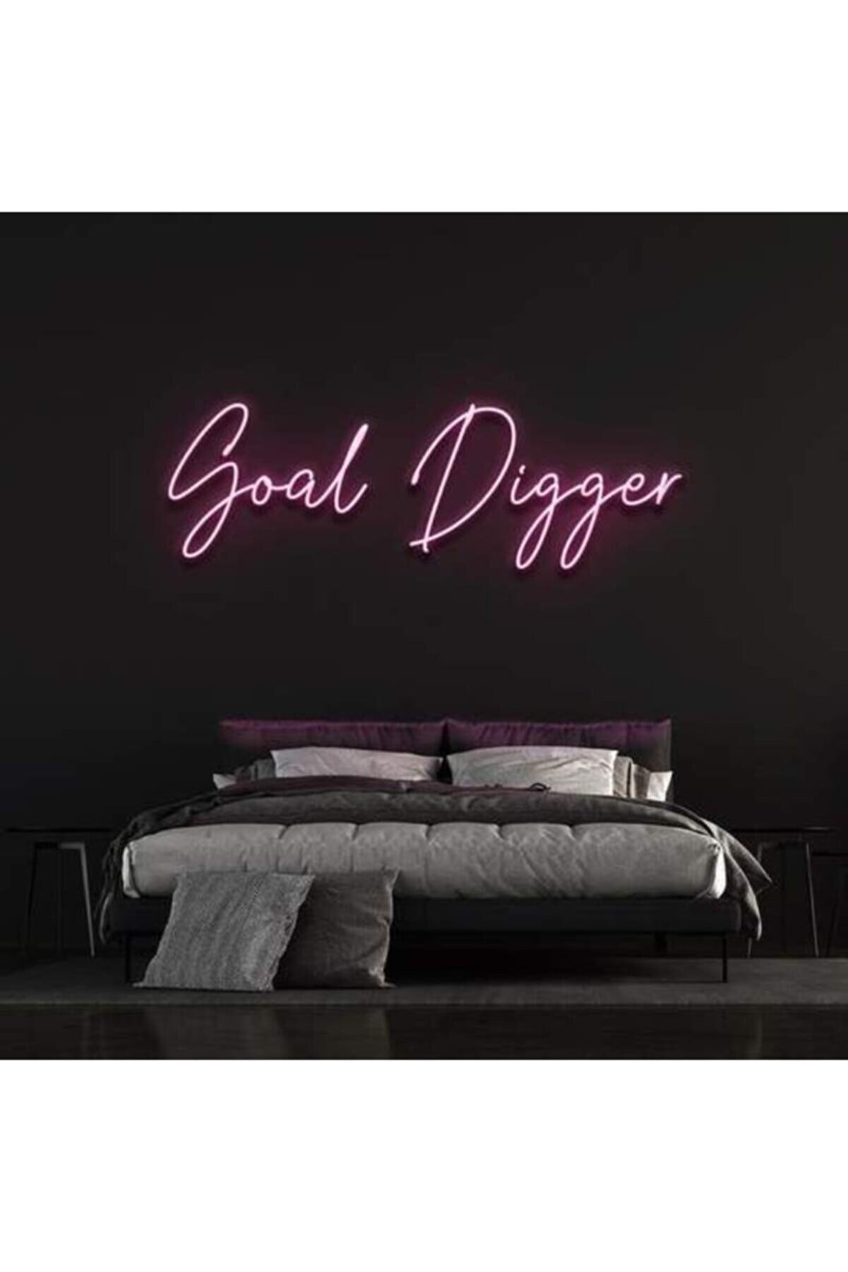 Neon Led Işıklı Goal Digger Yazılı Şeffaf Pleksi Üzerine Neon Led Tabela,