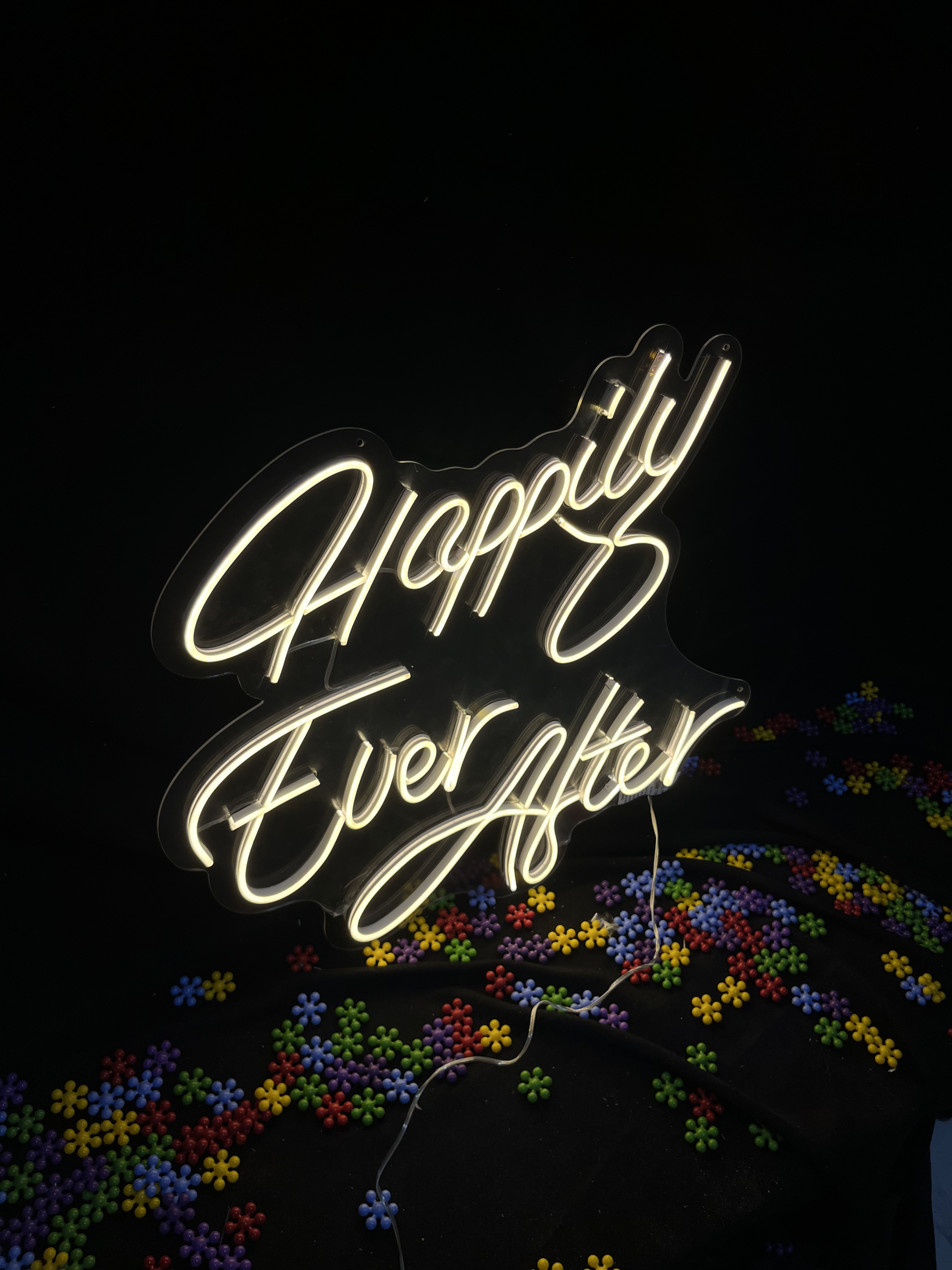 Happily Ever After v3 - Dekoratif Duvar Aydınlatması Neon Led Yazı Düğün Organizasyonu 60x60 cm