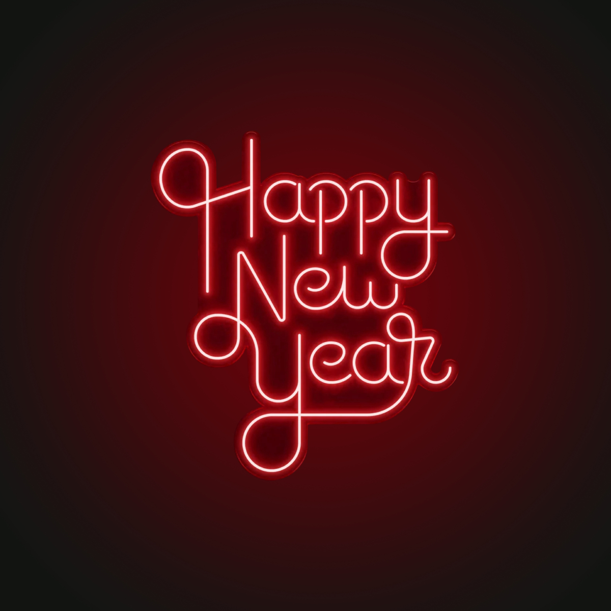 Neon Led Işıklı Yılbaşı Happy New Year Yazılı Şeffaf Pleksi Üzerine Neon Led Tabela,