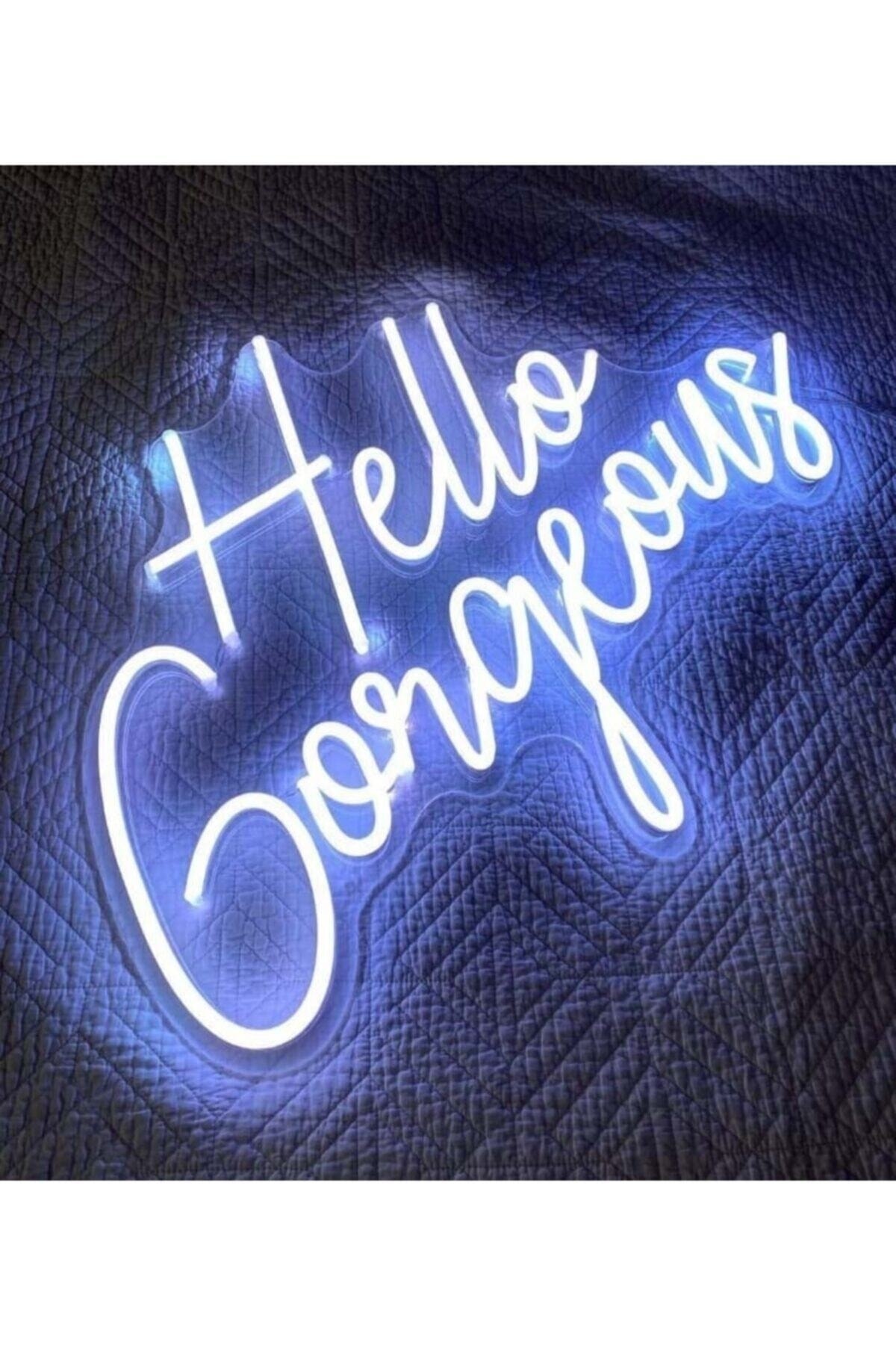 Neon Led Işıklı Hello Gorgeous Yazılı Şeffaf Pleksi Üzerine Neon Led Tabela,