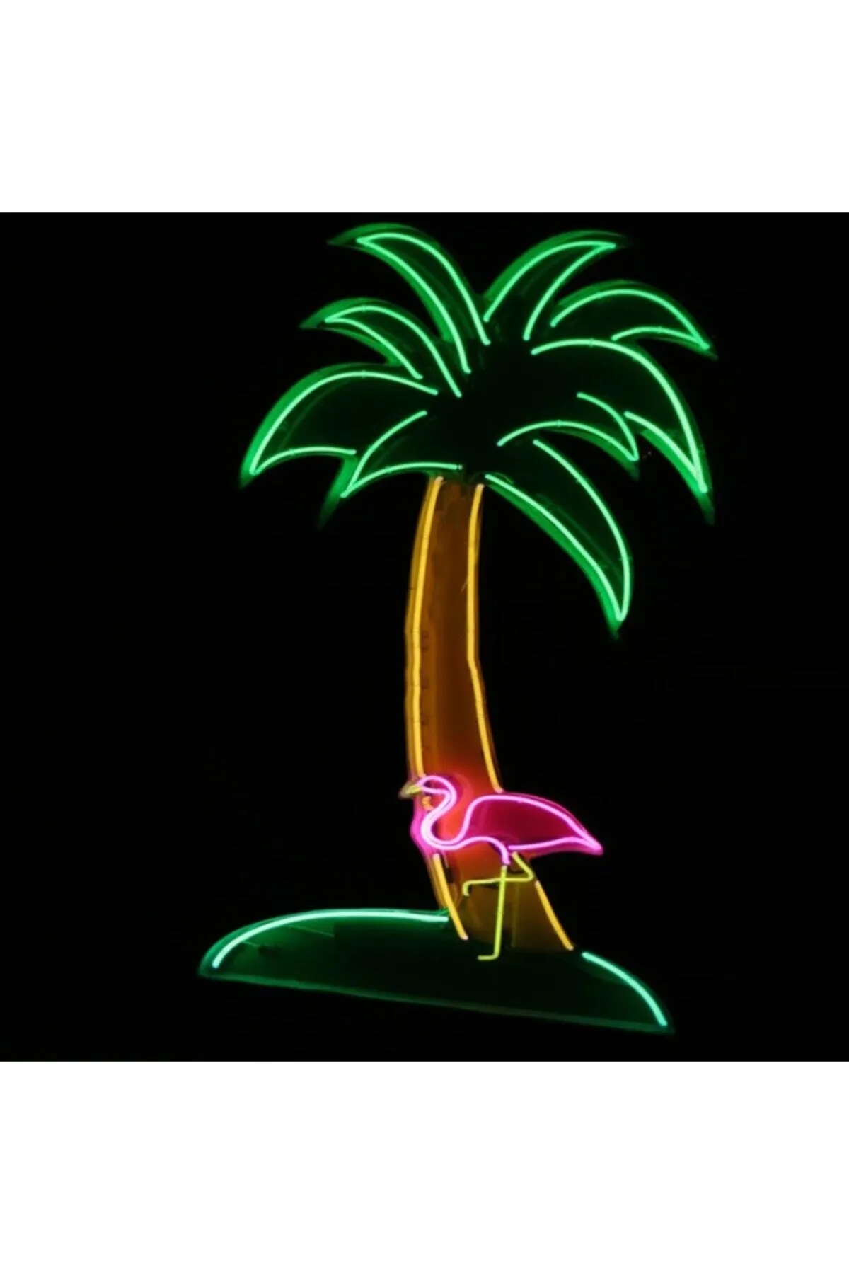 Neon Led Işıklı Palmiye ve Flamingo Şeklinde Şeffaf Pleksi Üzerine Neon Led Tabela,