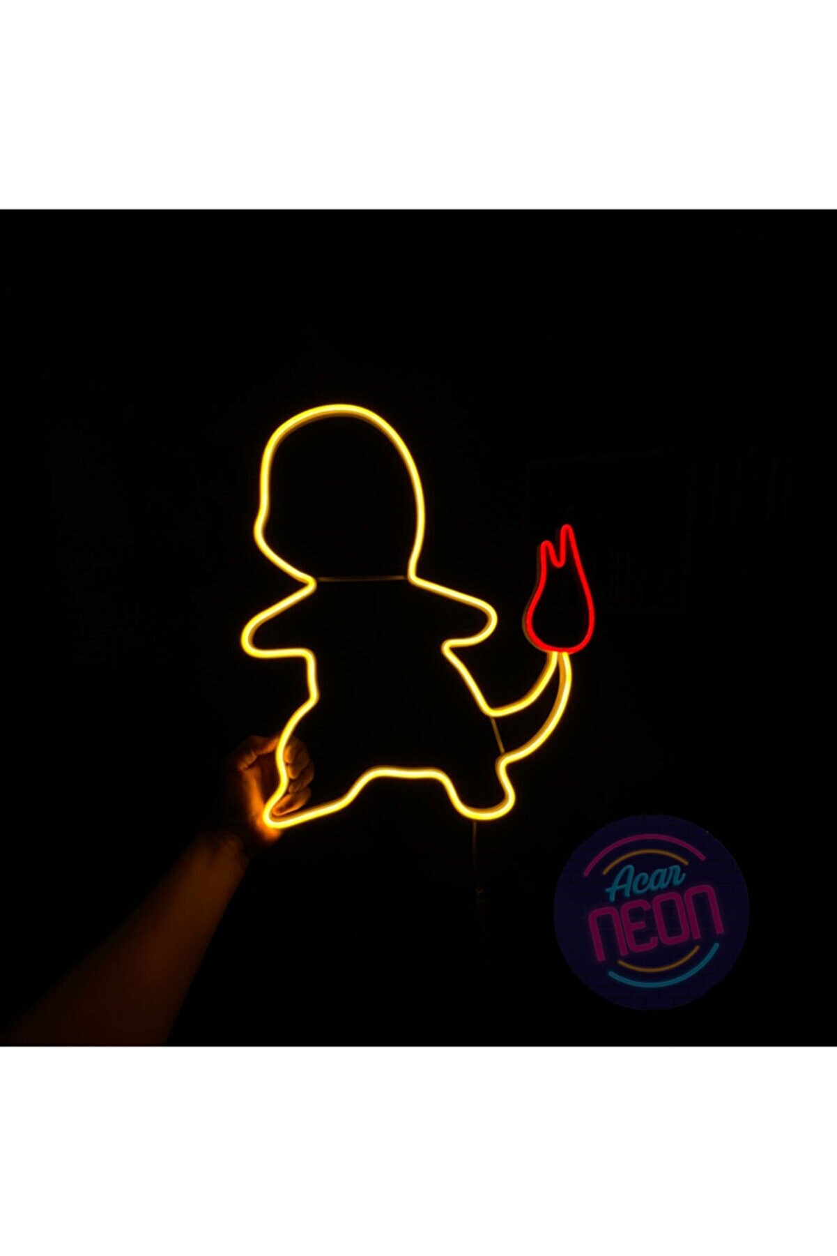 Neon Led Işıklı Charmender Şeklinde Şeffaf Pleksi Üzerine Neon Led Tabela,
