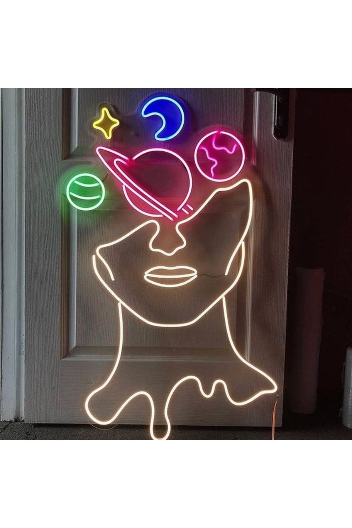Neon Led Işıklı Galaksi Kafa Şeffaf Pleksi Üzerine Neon Led Tabela,