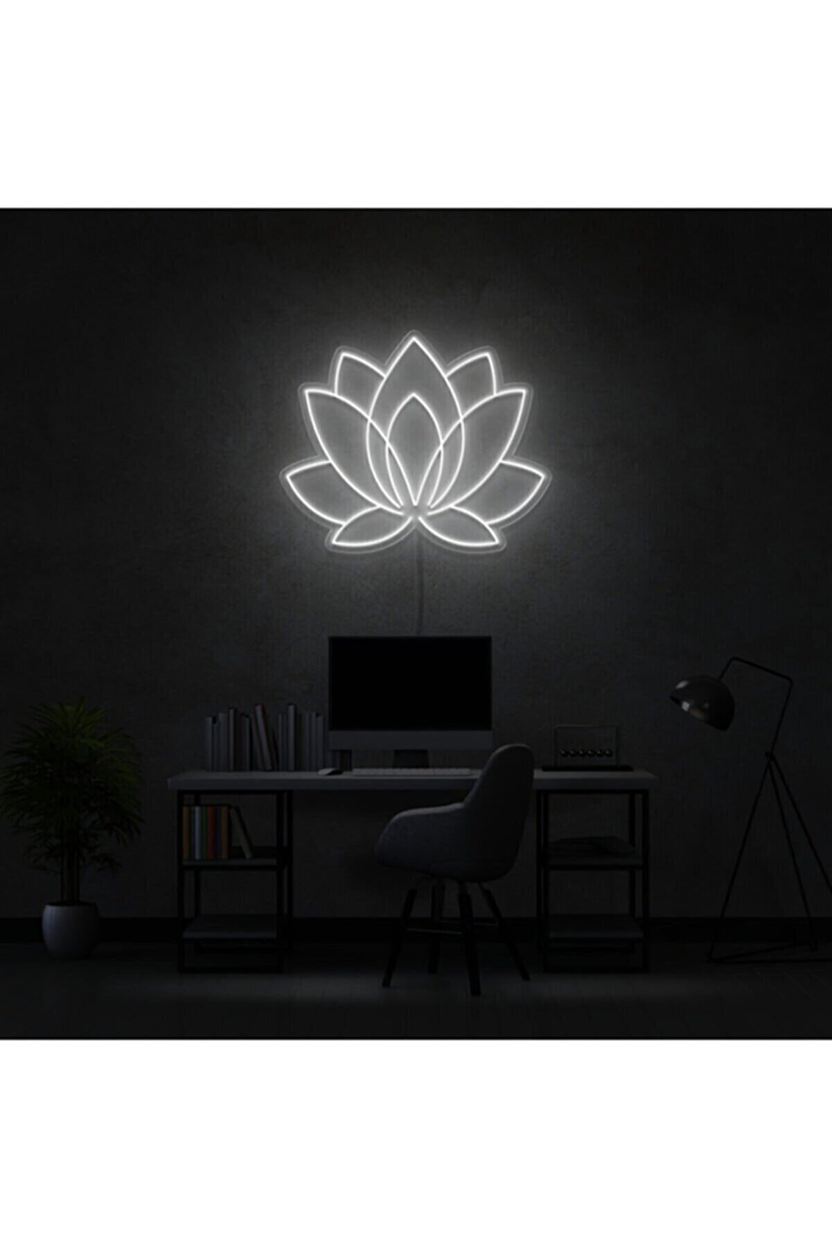 Neon Led Işıklı Lotus Çiçeği Şeklinde Şeffaf Pleksi Üzerine Neon Led Tabela,
