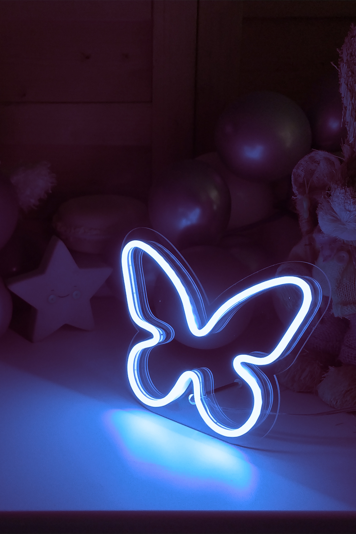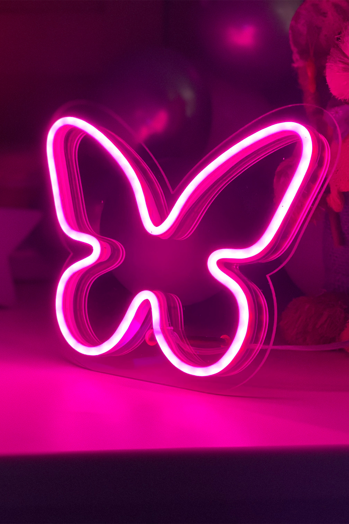 Neon Led Işıklı Masaüstü İçin Küçük Kelebek Şeklinde Şeffaf Pleksi Üzerine Neon Led Tabela,