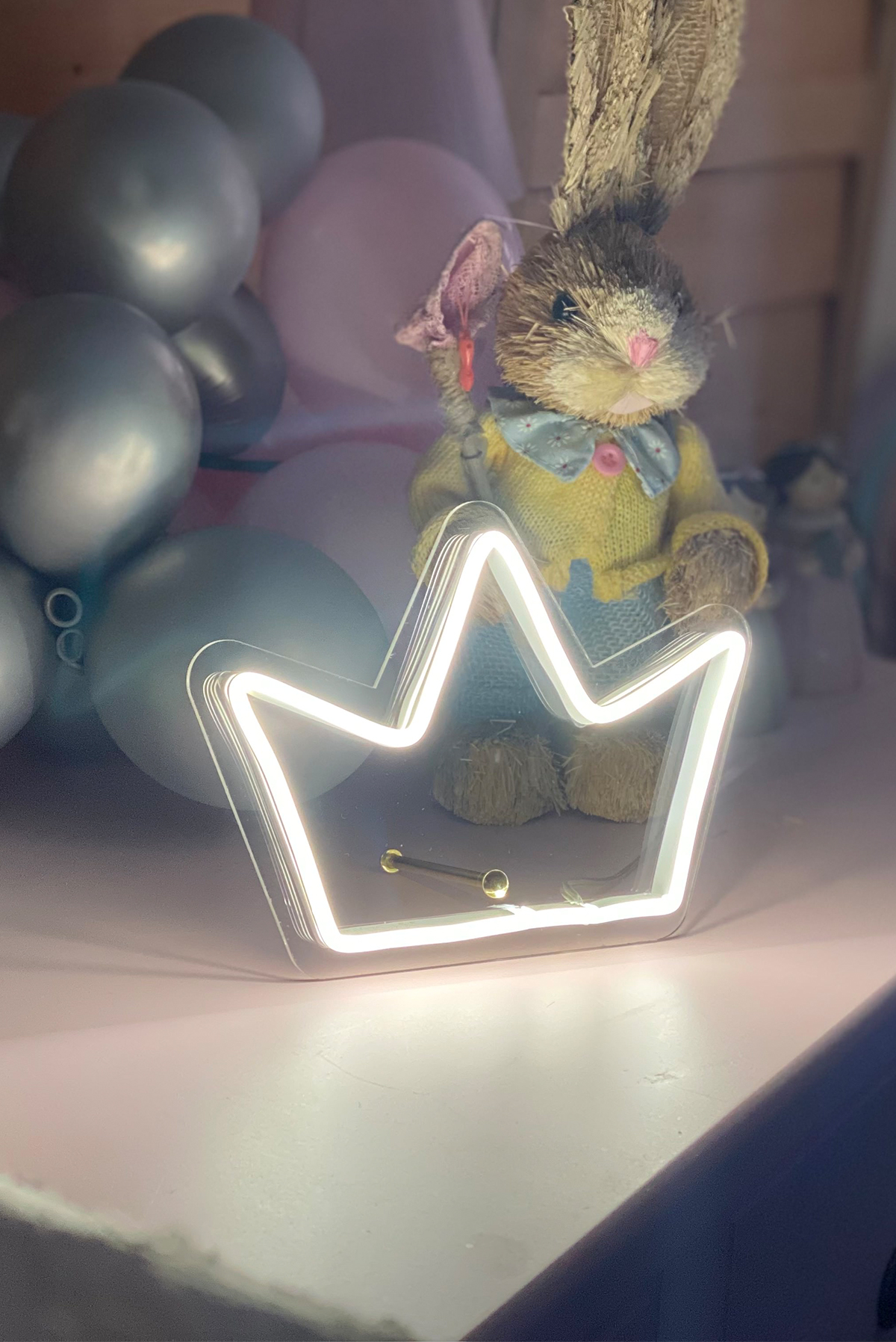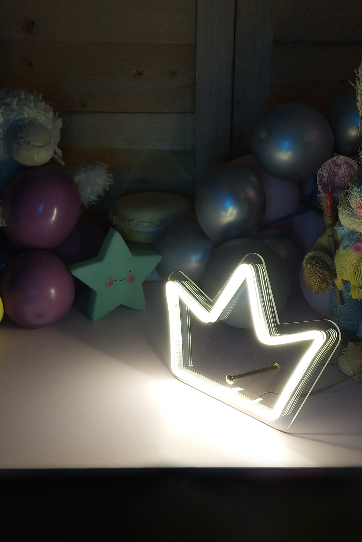 Neon Led Işıklı Masaüstü İçin Küçük Kral Tacı Şeklinde Şeffaf Pleksi Üzerine Neon Led Tabela,