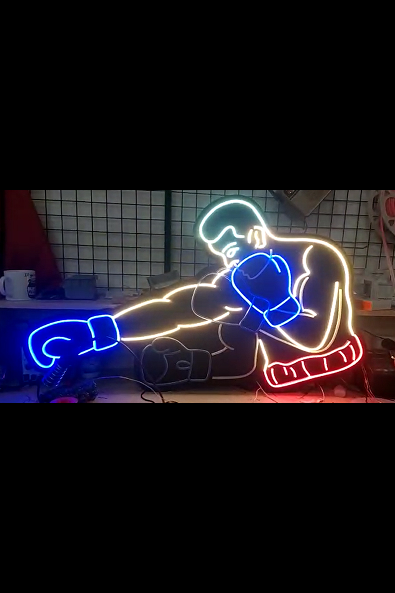 Neon Led Animasyonlu Yumruk Atan Boksör Şeffaf Pleksi Üzerine Neon Led Tabela,