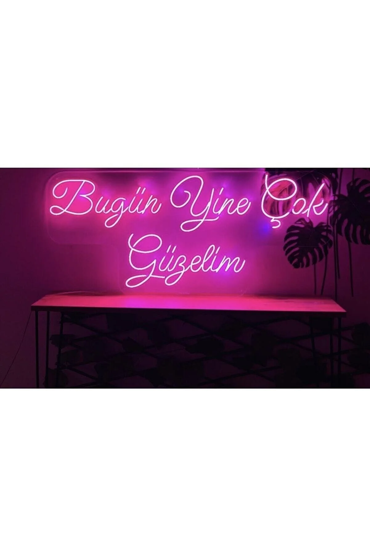 Neon Led Işıklı Bugün Yine Çok Güzelim Yazılı Şeffaf Pleksi Üzerine Neon Led Tabela,