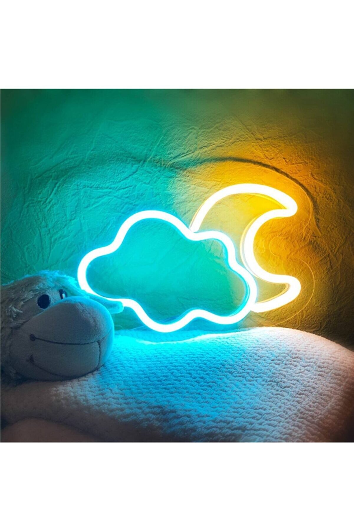 Neon Led Işıklı Bulut ve Ay Şeklinde Şeffaf Pleksi Üzerine Neon Led Tabela,