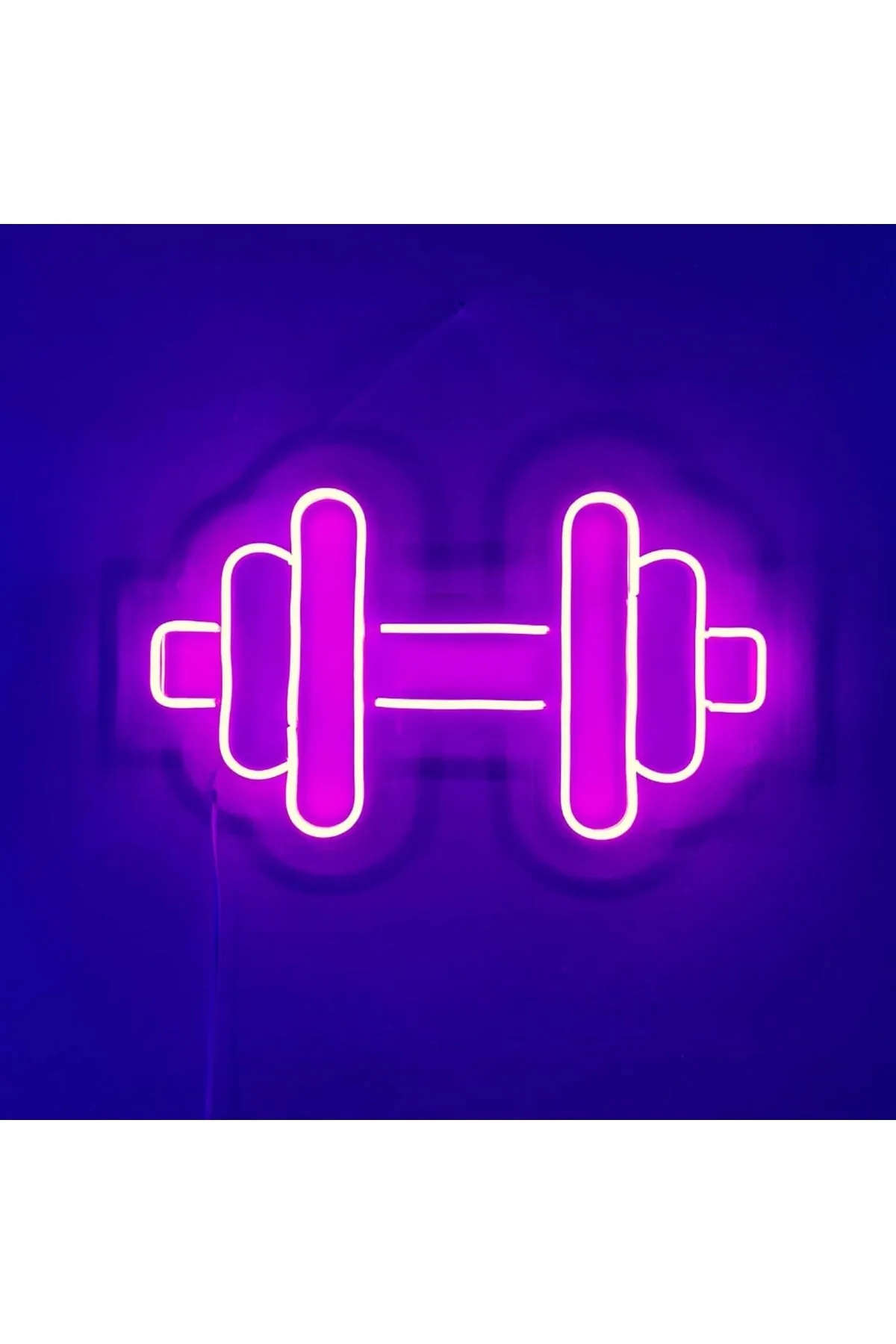 Neon Led Işıklı Dumbell (Dambıl) Halter Şeklinde Şeffaf Pleksi Üzerine Neon Led Tabela,