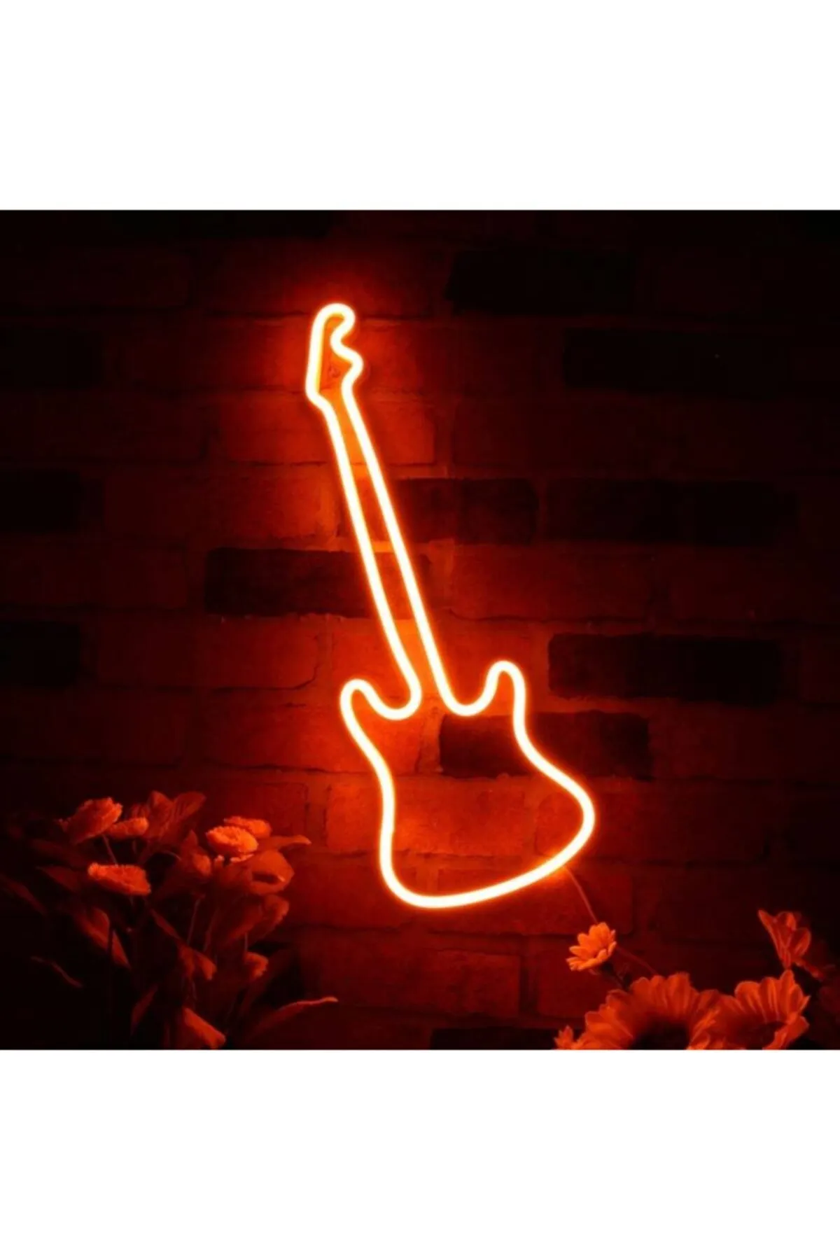 Neon Led Işıklı Elektrogitar Şeklinde Şeffaf Pleksi Üzerine Neon Led Tabela,