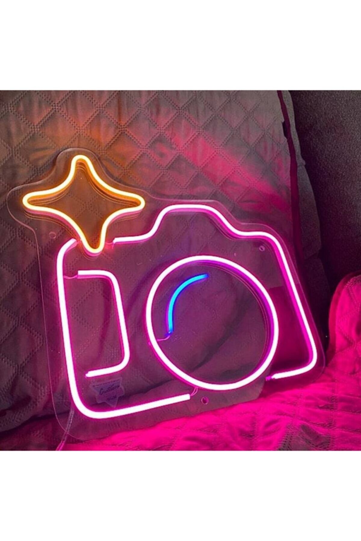 Neon Led Işıklı Fotoğraf Makinesi Şeklinde Şeffaf Pleksi Üzerine Neon Led Tabela,
