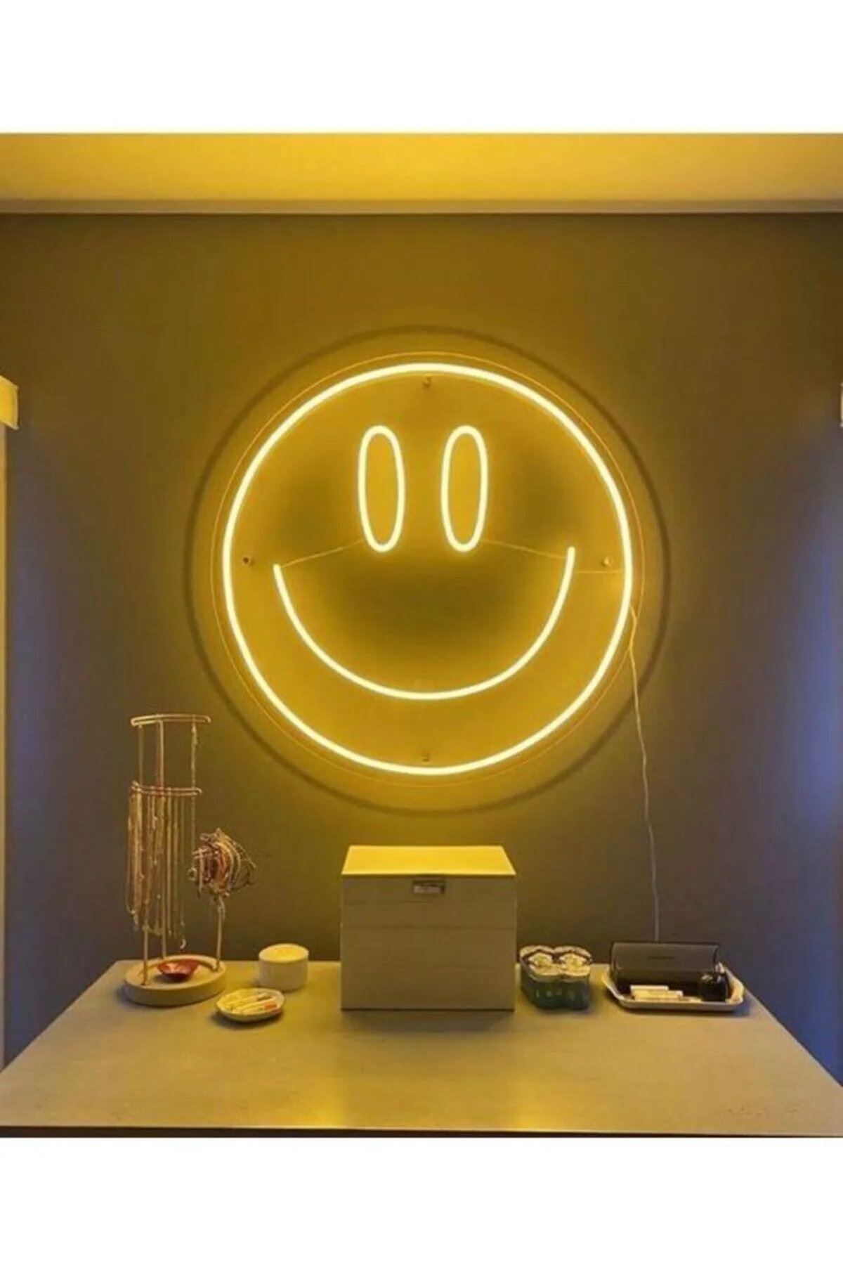 Neon Led Işıklı Gülen Yüz Emojisi Şeklinde Şeffaf Pleksi Üzerine Neon Led Tabela,