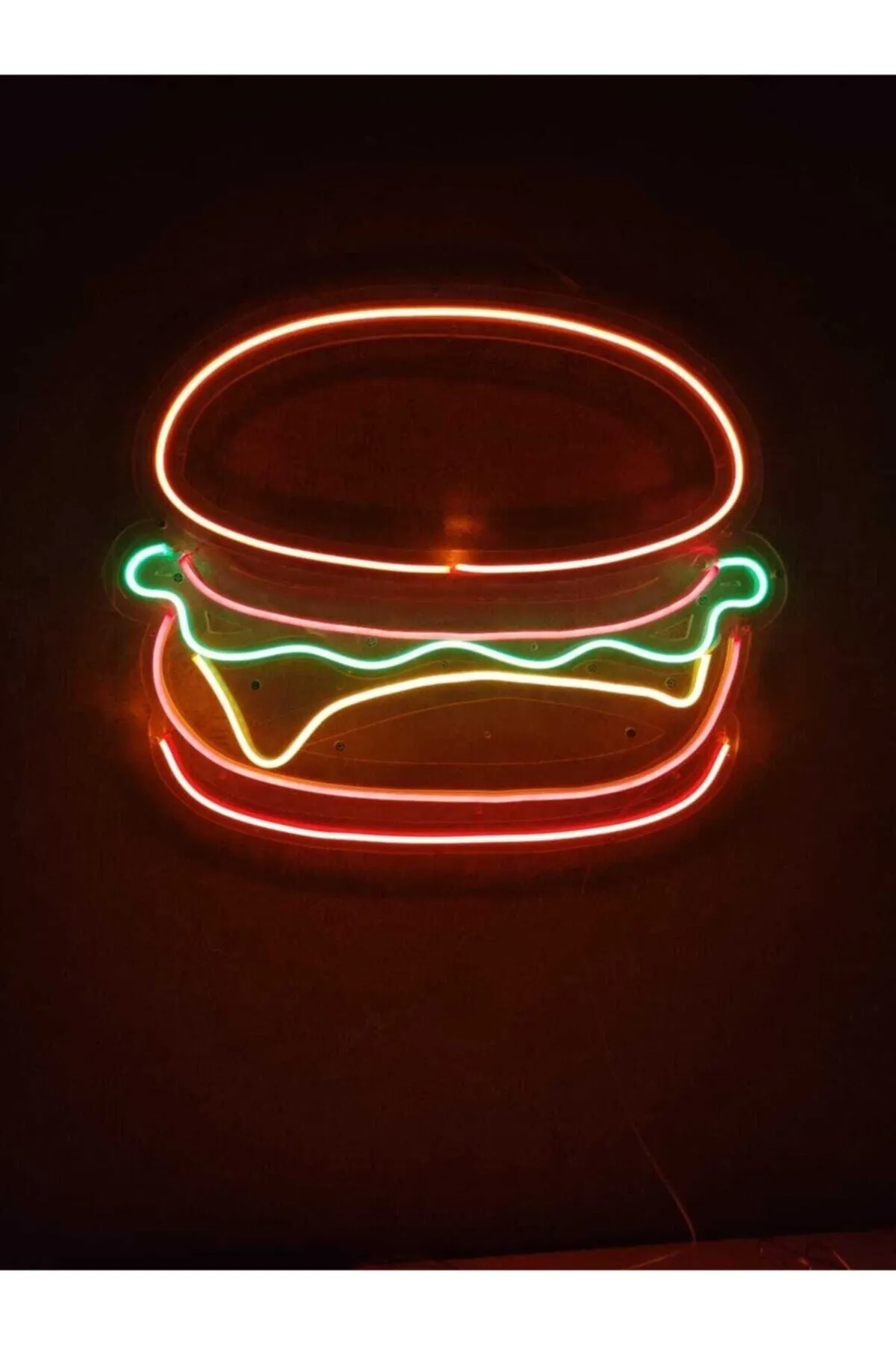 Neon Led Işıklı Hamburger Şeklinde Şeffaf Pleksi Üzerine Neon Led Tabela,