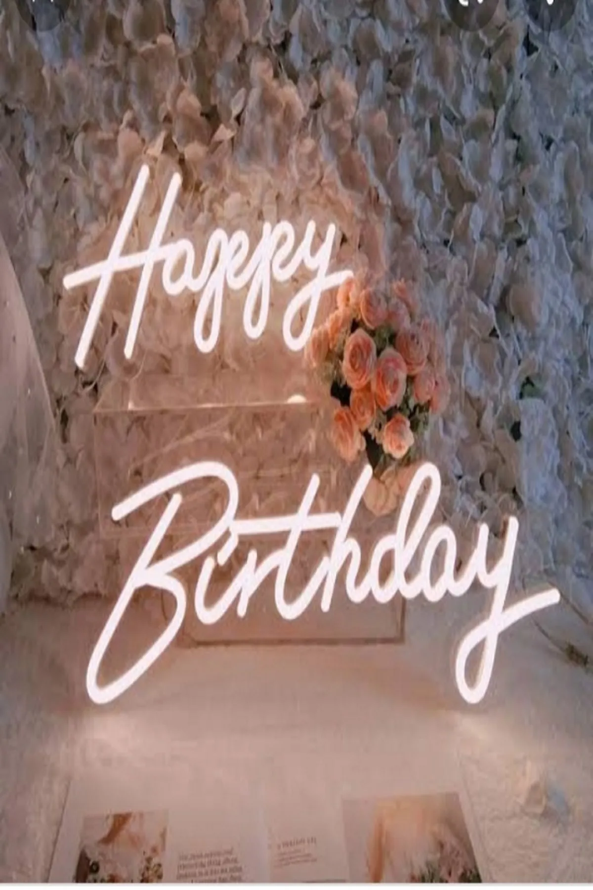 Neon Led Işıklı Happy Birthday Yazılı Şeffaf Pleksi Üzerine Neon Led Tabela,