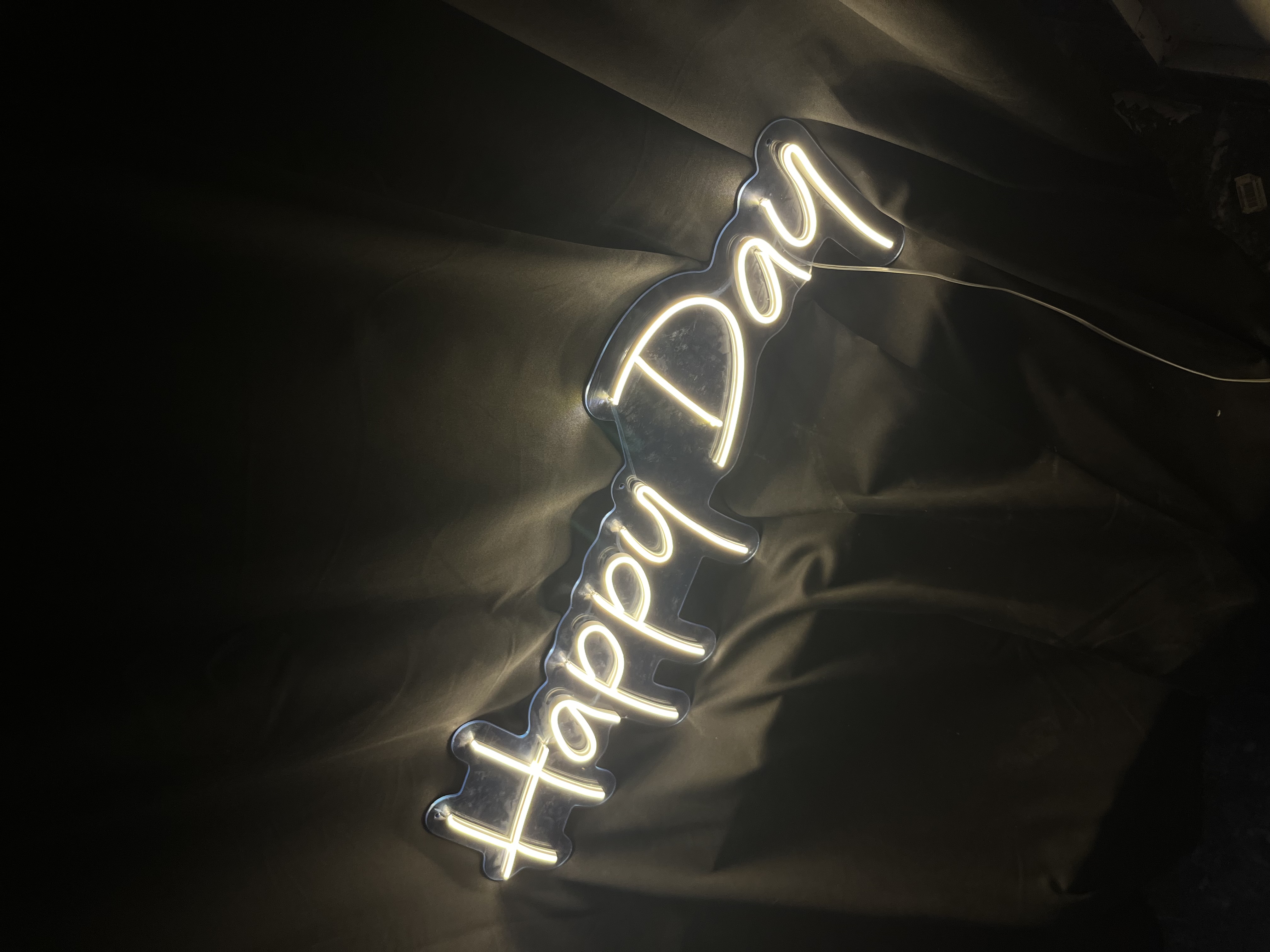 Happy Day - Dekoratif Duvar Aydınlatması Neon Led Yazı Yeni Doğum 80x25 cm