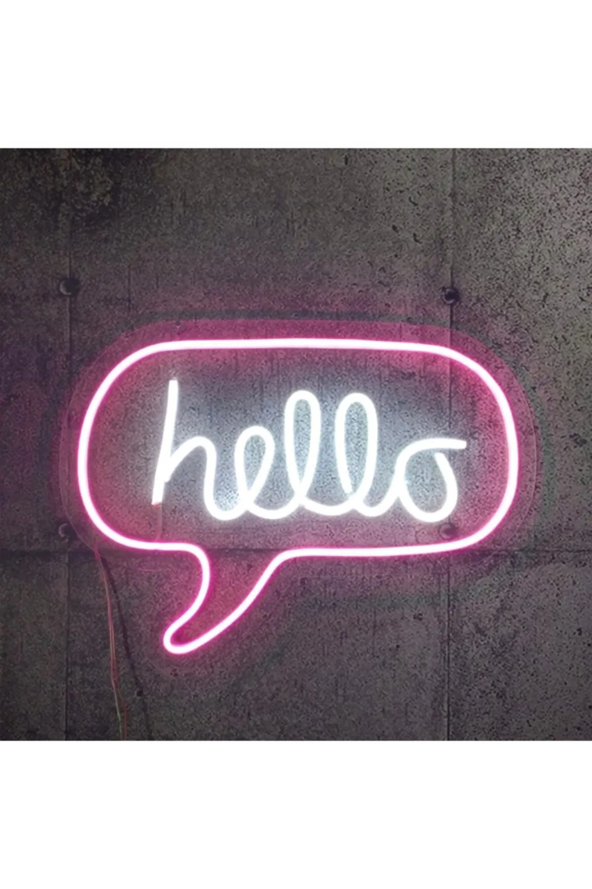 Neon Led Işıklı Hello Yazılı Konuşma Balonu Şeklinde Şeffaf Pleksi Üzerine Neon Led Tabela,