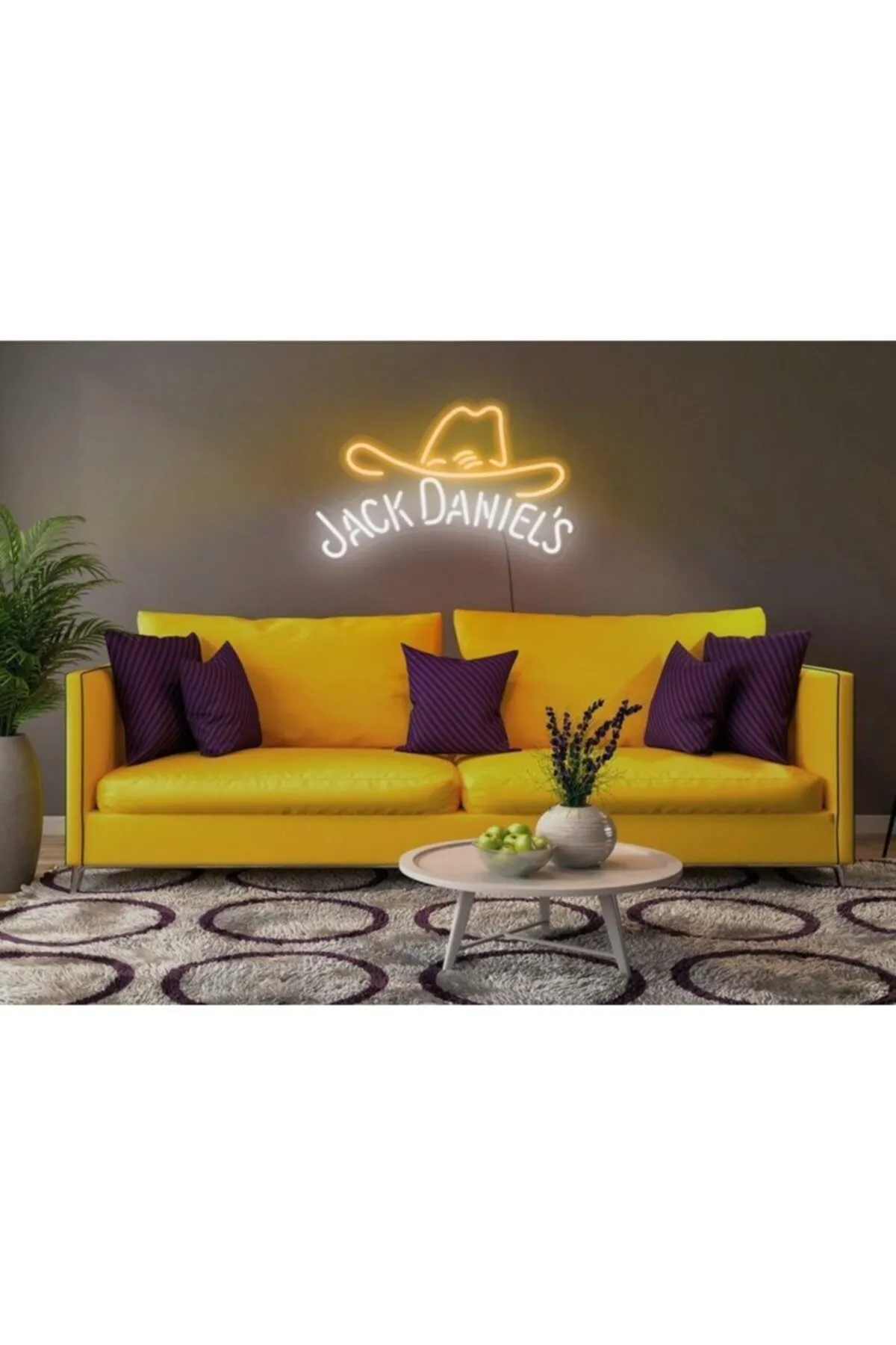 Neon Led Işıklı Kovboy Şapkası ve Jack Şeklinde Şeffaf Pleksi Üzerine Neon Led Tabela,