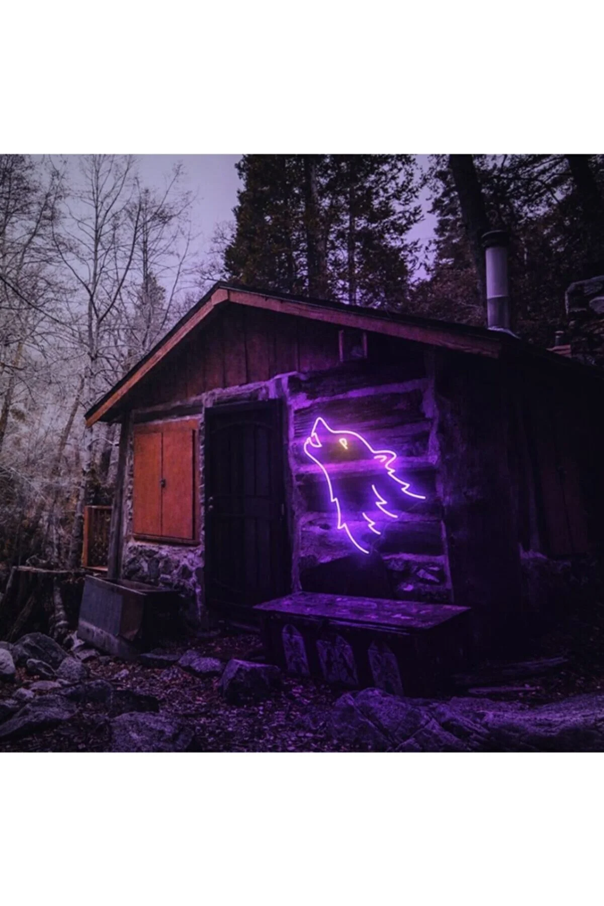 Neon Led Işıklı Kurt Başı Şeklinde Şeffaf Pleksi Üzerine Neon Led Tabela,