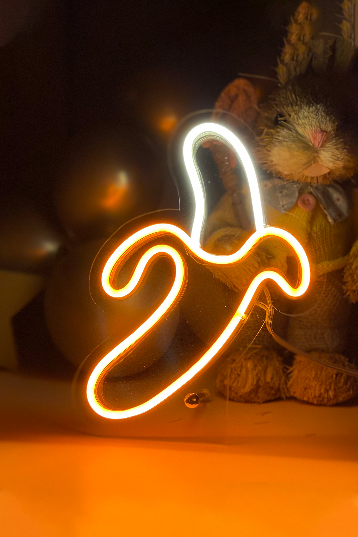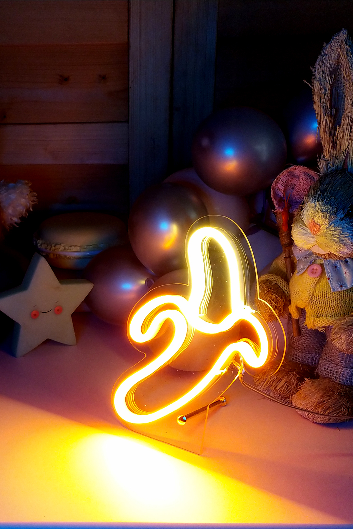 Neon Led Işıklı Çocuk Odası İçin Masaüstü Küçük Muz Şeklinde Şeffaf Pleksi Üzerine Neon Led Tabela,