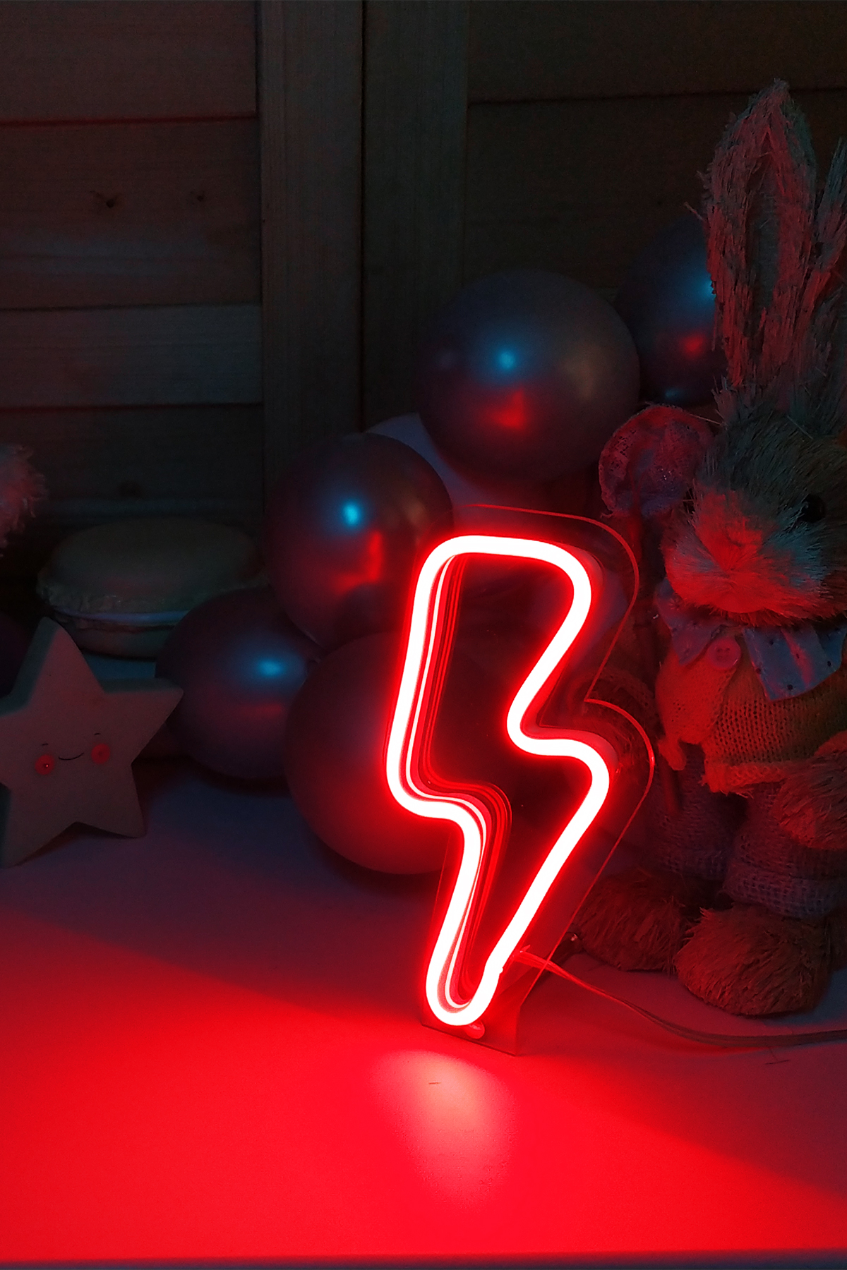 Neon Led Işıklı Çocuk Odası İçin Masaüstü Küçük Şimşek Şeklinde Şeffaf Pleksi Üzerine Neon Led Tabela,