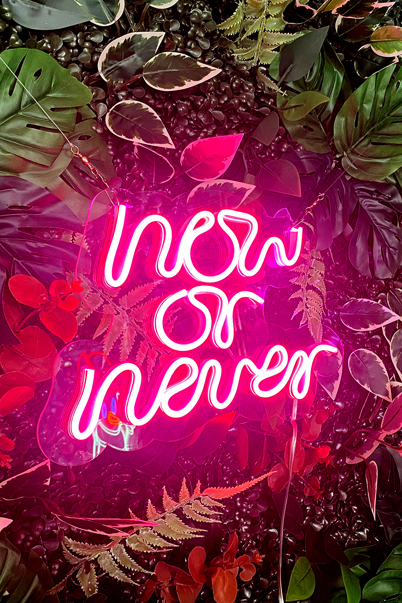 Neon Led Işıklı Now Or Never Yazılı Şeffaf Pleksi Üzerine Neon Led Tabela,