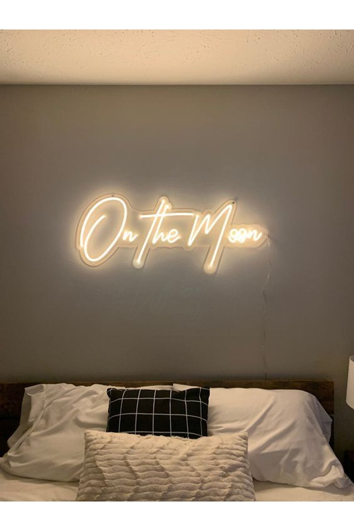 Neon Led Işıklı On The Moon Yazılı Şeffaf Pleksi Üzerine Neon Led Tabela,