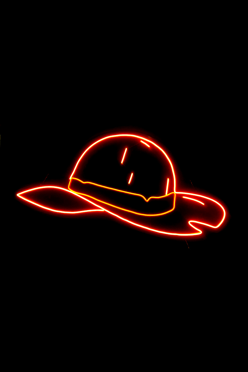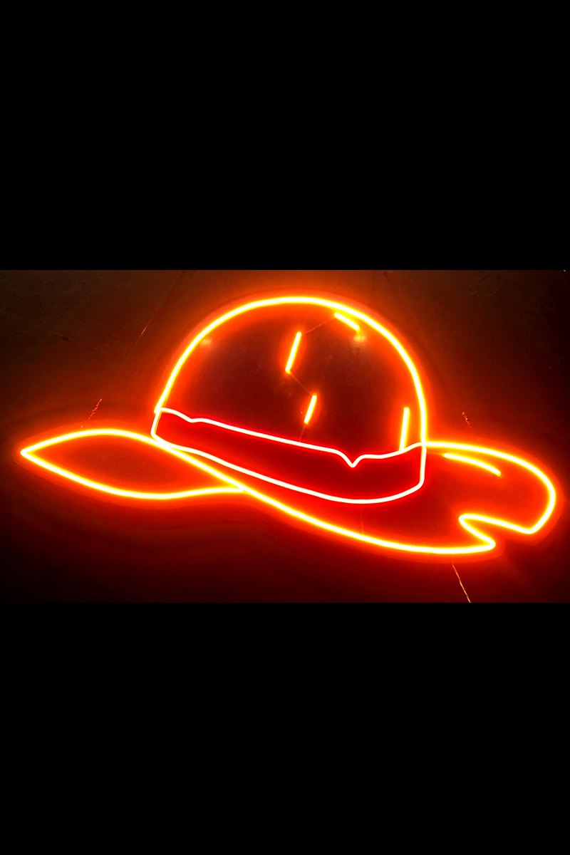 Neon Led Işıklı One Piece Şapkası Şeklinde Şeffaf Pleksi Üzerine Neon Led Tabela,