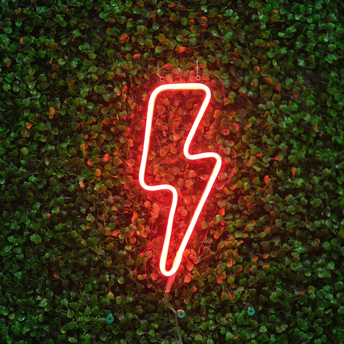 Neon Led Işıklı RGB Şimşek Şeklinde Şeffaf Pleksi Üzerine Neon Led Tabela,